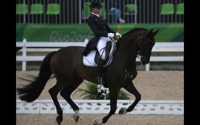 RÍO DE JANEIRO, BRASIL (10/AGO/2016).- La amazona Dorothee Schneider lidera la clasificación individual de adiestramiento, donde la mexicana Bernadette Pujals es 22, al concluir el primer día de esta modalidad de ecuestres, en los Juegos Olímpicos de Río 2016.A la monta de Showtime FRH, la europea sumó el miércoles 80.986 puntos, seguido de su compatriota Sonke Rothenberger, arriba de Cosmo, con 77.329 unidades, y en tercer puesto se ubicó la británica Fiona Bigwood, en el adiestramiento de Orthilia, con 77.157.La mexicana Bernadette Pujals, a la monta de Rolex, se posicionó en el puesto 22, con 66.757 unidades, al concluir las actividades del primer día.Schneider y Rothenberger tienen en primer lugar a Alemania en la prueba de adiestramiento por equipo, con 79.157 puntos, seguida de Holanda con 75.271 y Gran Bretaña con 74.921