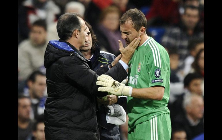 Deportes | El portero del Real Madrid tuvo un choque en el partido frente a Auxerre y será operado Dudek sale con fractura en la mandíbula El portero del Real Madrid tuvo un choque en el partido frente al Auxerre y será operado Por: NTX 8 de diciembre de 2010 - 18:49 hs Dudek es revisado por los médicos del Real Madrid antes de ser enviado al hospital para una evaluación. AFP / MADRID, ESPAÑA (08/DIC/2010).- El polaco Jerzy Dudek, portero del Real Madrid, fue diagnosticado con fractura en la mandíbula después del partido frente al Auxerre, en la sexta jornada de la Liga de Campeones y podría ser operado. El guardameta salió del encuentro ganado por los españoles 4-0 tras un choque accidental con el delantero francés Roy Contout, en la parte final del primer tiempo; su lugar fue ocupado por el canterano Antonio Adan. Después de ser revisado por el cuerpo médico del cuadro 'merengue', Dudek permaneció en el hospital Sanitas de la Moraleja de esta ciudad donde le fue diagnosticada la fractura de la mandíbula; sin embargo, el tiempo que el polaco estará inactivo no fue confirmado. El ex portero del Liverpool jugó frente al Auxerre sus primeros minutos con el Real Madrid desde el 10 de noviembre de 2009, cuando el cuadro "merengue" ganó por 1-0 al Alcorcón en los dieciseisavos de final de la Copa del Rey. Aquella ocasión, la victoria blanca no fue suficiente para avanzar a la siguiente ronda al acabar con un 4-1 global. Temas Futbol Internacional Liga de Campeones de la UEFA Real Madrid Lee También Futbol hoy 13 de octubre de 2025: ¿Dónde ver los partidos en vivo? Así se jugarán las Semifinales del Mundial Sub-20 El Tricolor entrenó en Guadalajara tras la humillación ante Colombia México Sub-20 regresa al país tras eliminación ante Argentina Recibe las últimas noticias en tu e-mail Todo lo que necesitas saber para comenzar tu día Registrarse implica aceptar los Términos y Condiciones