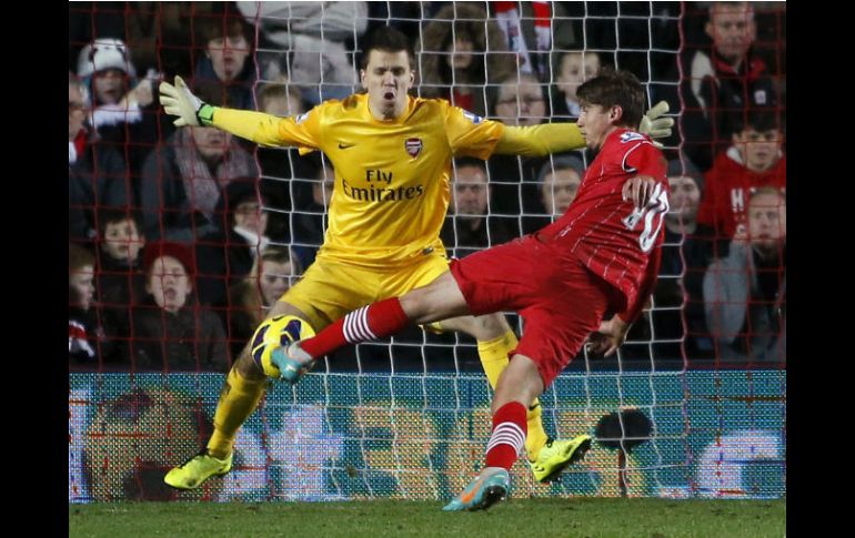 Deportes | El empate deja al cuadro de Arsene Wenger en la quinta plaza de la tabla El Arsenal se estrella ante el Southampton El cuadro de Arsene Wenger, que acumulaba cuatro victorias seguidas, se topó con las ambiciones de su rival, en plena lucha por evitar el descenso Por: EFE 1 de enero de 2013 - 13:12 hs Gaston Ramírez de Southampton dispara y anota un gol al guardamenta del Arsenal Wojciech Szczesny. REUTERS / MADRID, ESPAÑA (01/ENE/2012).- El Southampton frenó la progresión del Arsenal, que no pasó del empate en el St. Mary's Stadium (1-1) y dio un paso atrás en sus intenciones de consolidarse en la parte alta de la clasificación de la Liga de Inglaterra que lidera el Manchester United. El cuadro de Arsene Wenger, que acumulaba cuatro victorias seguidas, se topó con las ambiciones de su rival, en plena lucha por evitar el descenso. El punto obtenido, insuficiente para los méritos contraídos, saca al conjunto de Nigel Adkins del antepenúltimo lugar, donde mete al Wigan del español Roberto Martínez, goleado por el United (0-4). El uruguayo Gastón Ramírez, en el minuto 34, aprovechó un centro de Jason Puncheon para adelantar al Southampton en el marcador. Sin embargo, el Arsenal, que incluyó en su equipo titular a los españoles Santi Cazorla y Mikel Arteta, se encontró con la igualada antes del descanso gracias a un gol en propia puerta del brasileño Guilherme Do Prado. El empate deja al cuadro de Arsene Wenger, que aún tiene pendiente un partido por jugar, en la quinta plaza de la tabla. A cuatro puntos del Chelsea, que el miércoles juega ante el Queens Park Rangers, y a cinco del Tottenham, tercero, que venció al Reading (3-1). Temas Liga Premier Futbol Internacional Futbol Inglés Arsenal Lee También Atlas visita al Atlético San Luis en una semana clave para su futuro ¿Dónde ver EN VIVO el partido de J13 San Luis vs Atlas? México, entre países que han comprado más boletos para el Mundial 2026 ¿Dónde ver EN VIVO el partido de J13 Tigres vs Necaxa? Recibe las últimas noticias en tu e-mail Todo lo que necesitas saber para comenzar tu día Registrarse implica aceptar los Términos y Condiciones