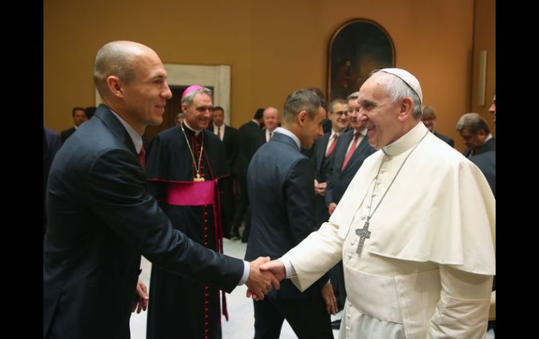 Deportes | El equipo alemán sostiene una audiencia privada con su Santidad Francisco El Bayern de Munich recibe la bendición del Papa El equipo alemán sostiene una audiencia privada con su Santidad Francisco Por: AP 22 de octubre de 2014 - 05:39 hs El Papa Francisco saluda al jugador del Bayern Munich, Arjen Robben. AP / A. Hassenstein ROMA, ITALIA (22/OCT/2014).- El Papa Francisco, gran aficionado al futbol, recibió en audiencia privada a los jugadores y al equipo técnico del Bayern de Munich este miércoles, al día siguiente de que el equipo bávaro goleara (7-1) al AS Roma en la Liga de Campeones. "Ayer jugaron un partido magnífico", les dijo a los jugadores el pontífice argentino, que también es obispo de Roma, según la cuenta del Bayern en Twitter. La delegación del club con el mejor palmarés de Alemania, encabezada por sus dirigentes Karl Hopfner y Karl-Heinz Rummenigge, prometió al papa una donación de un millón de euros procedente de los ingresos de taquilla de un partido amistoso que se disputará el año que viene. "El Papa Francisco podrá decidir él mismo cómo se utilizar este dinero para ayudar espontáneamente a personas necesitadas, independientemente de la fe que reivindiquen y de qué lugar en el mundo", explicó el Bayern en un comunicado. Los dos capitanes del equipo, Philipp Lahm y Manuel Neuer, y el entrenador Pep Guardiola entregaron al santo padre una camiseta del FC Bayern con el nombre Franziskus impreso en la espalda y firmada por toda la plantilla. El breve encuentro tuvo lugar en una sala del Vaticano antes de la audiencia general semanal en la plaza de San Pedro, donde decenas de miles de fieles del mundo entero esperaban al Papa. El Bayern de Munich, quíntuple vencedor de la Liga de Campeones, hizo el martes un partido perfecto en la cancha de la Roma, en una demostración magistral de la distancia que separa todavía a un grande de Europa y un aspirante. Temas Futbol Internacional Bayern Munich Papa Francisco Recibe las últimas noticias en tu e-mail Todo lo que necesitas saber para comenzar tu día Registrarse implica aceptar los Términos y Condiciones