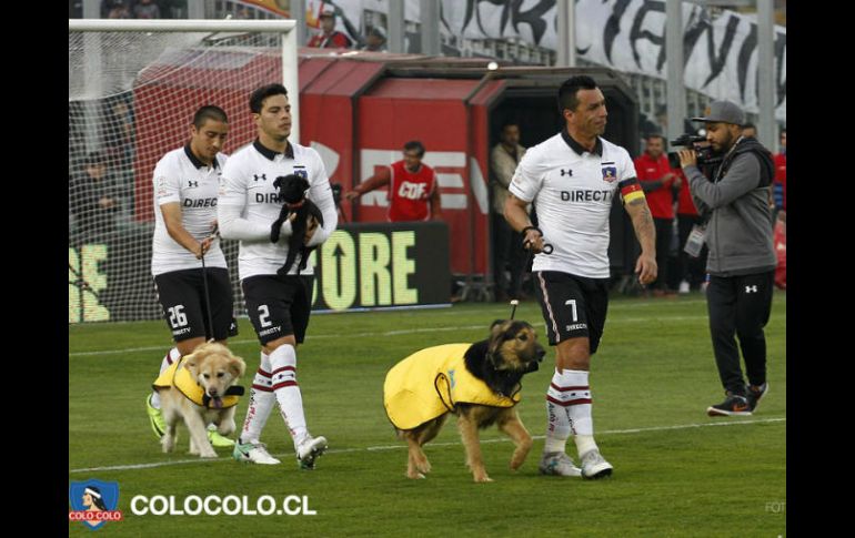 GUADALAJARA, JALISCO (31/JUL/2017).- El equipo de futbol chileno, Colo Colo, sorprendió a sus aficionados al salir a su debut en la temporada acompañado por perros, previo al incio del partido. La finalidad, señalaron, es la de promover la adopción de mascotas en el país.El cuadro inicial salió al terren de juego antes del incio ante el Antofagasta junto a algunos canes que forman parte de una campaña que busca evitar que las personas compren a estos animales, y que prefiera la adopción de los mismos.No es la primera ocasión en que el equipo sudamericano realiza esta acción. Antes, ya los jugadores habían salido acompañados de estas mascotas con el deseo de promover esta buena causa.