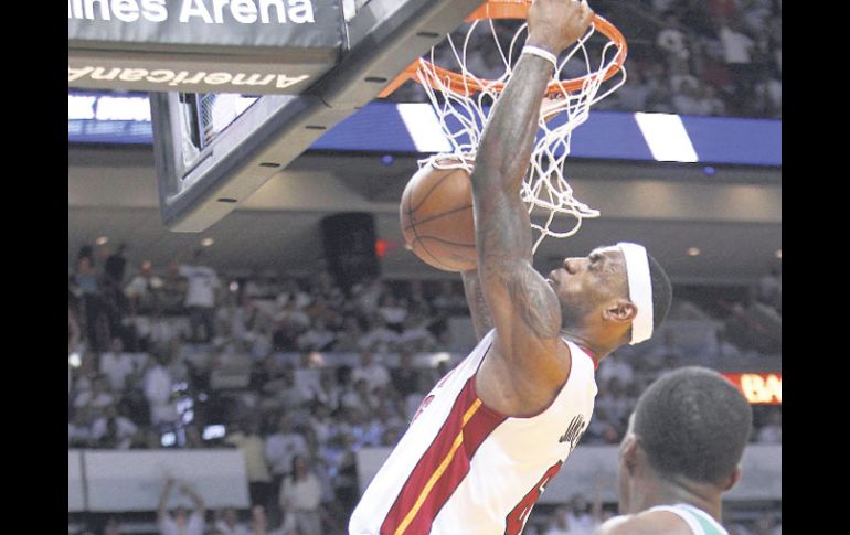 Deportes | Miami se pone 2-0 en la serie El Heat da otro golpe de calor a Boston Miami se pone 2-0 en la serie Por: AP 4 de mayo de 2011 - 05:08 hs LeBron James clava con fuerza el balón en el aro de Boston. Aportó 35 puntos para Miami. AP / MIAMI, ESTADOS UNIDOS (04/MAY/2011).- LeBron James anotó el martes 35 puntos, Dwyane Wade aportó 28 y el Heat de Miami se apuntó un parcial de 14-0 para derrotar 102-91 a los Celtics de Boston en el segundo partido de su serie de semifinales de la Conferencia Este. Chris Bosh concluyó con 17 puntos y 11 rebotes para Miami, que encabeza 2-0 la serie al mejor de siete partidos. El tercer juego se disputará el sábado en Boston. Los Celtics empataron el encuentro a 80 con un par de tiros libres de Paul Pierce cuando quedaban 7:10 minutos, pero luego fallaron sus siguientes seis tiros y Miami se alejó en el marcador. Rajon Rondo logró 20 puntos y 12 asistencias para Boston, que también tuvo 16 unidades de Kevin Garnett y 13 de Pierce. Nombran a Derrick Rose Jugador Más Valioso El base de los Bulls de Chicago, Derrick Rose, ganó el premio al Jugador Más Valioso del año, anunció el martes la NBA. Rose, de 22 años, se convirtió en forma oficial en el jugador más joven que gana el premio MVP y se sumó a Michael Jordan como los únicos integrantes de los Bulls que se lo han llevado. "Ni siquiera me estoy acercando a ese hombre (Jordan)", dijo Rose. "Estoy muy lejos de él. Sería excelente estar más cerca de él. Este es un equipo distinto, una época distinta". La noticia no fue nada sorpresiva, ya que el base tuvo una temporada espectacular en la cual llevó a Chicago a lograr la mejor foja de la liga. Temas NBA Basquetbol Miami Heat Recibe las últimas noticias en tu e-mail Todo lo que necesitas saber para comenzar tu día Registrarse implica aceptar los Términos y Condiciones