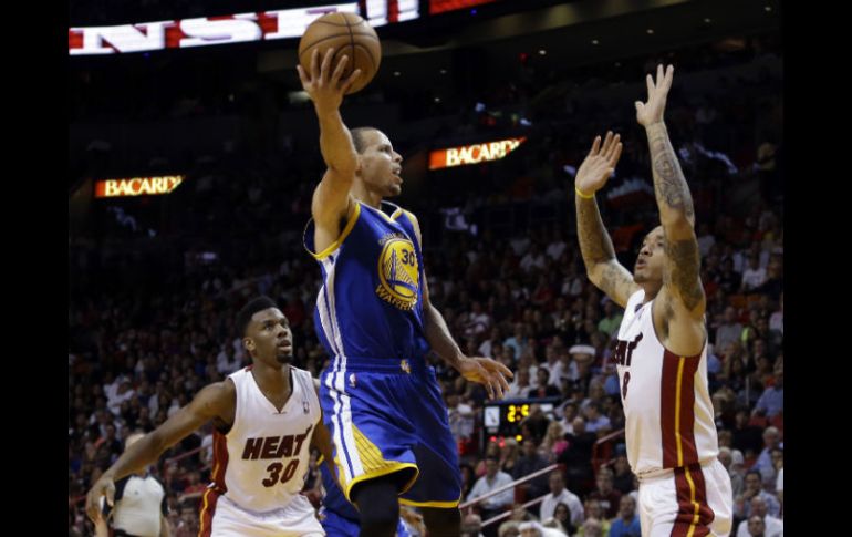 Los Heat regresaron a su casa después de una exitosa gira por el Oeste con balance de 3-1, pero comenzaron el año con el pie izquierdo. Los verdugos de los titulares fueron Steph Curry y David Lee, quienes entre ambos aportaron a la victoria 68 puntos, gracias a 36 del primero y 32 del segundo. El armador Curry también repartió 12 asistencias y Lee lo hizo con la friolera de 14 rebotes. Su compañero Klay Thompson aportó al triunfo 16 tantos y Harrison Barnes 15 saliendo de la banca por los Golden State, que lleva siete victorias al hilo. Los cinco abridores de los campeones, que tienen récord de 24-8, tuvieron marcadores de doble figura, pero el equipo no pudo detener a los "guerreros", quien estuvieron inmensos en la cancha. LeBron fue el mejor por los Heat con 26 puntos, seguido de Dwyane Wade, con 22, Chris Bosh, con 19, y Mario Chalmers, con 17. Otro que pasó los 10 puntos fue Shane Battier (11). En Oklahoma City, los también favoritos y anfitriones Thunder cedieron ante los alicaídos Brooklyn Nets con reñida pizarra de 95-93. Los más destacados por el quinteto neoyorquino fueron el armador Daron Williams y el veterano Paul Pierce, con 29 puntos el primero y 18 el segundo. Por los OKC destacaron su astro Kevin Durant -líder anotador del torneo- y el español Serge Ibaka, con 24 tantos el primero y 10 con 11 capturas el ibérico. En Chicago, el francés Joakim Noah se quedó a un paso (asistencia) del "triple-doble", para encaminar a los locales Bulls en una victoria de 94-82 sobre los Boston Celtics. El pívot Noah terminó con 17 puntos, 11 rebotes y nueve servicios para anotación. Sus coequiperos Carlos Boozer y el sudanés Luol Deng terminaron con 16 y 14 tantos, respectivamente, para que el conjunto de la "Ciudad de los Vientos" lograra su cuarta victoria en las últimas seis salidas.