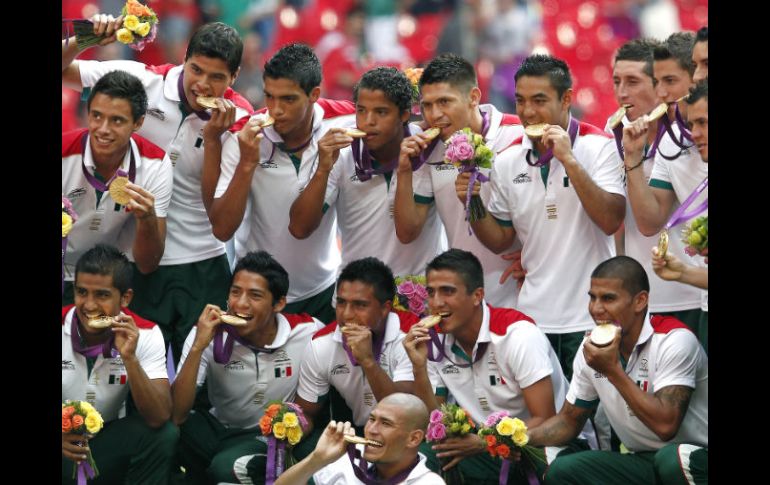 Deportes | El Tri celebra en lo más alto del podio en Londres 2012 El Himno Nacional suena en Wembley El Tri celebra en lo más alto del podio en Londres 2012 Por: NTX 11 de agosto de 2012 - 11:40 hs LONDRES, INGLATERRA (11/AGO/2012).- Las notas del Himno Nacional Mexicano se escucharon en el estadio de Wembley, donde la selección Sub 23 subió a lo más alto del podio tras imponerse 2-1 a su similar de Brasil, en la final del futbol varonil de los Juegos Olímpicos Londres 2012. Con emoción, los integrantes del equipo tricolor vieron como se izaba la bandera de su país teniendo a los lados la de Brasil y Corea para después dar rienda suelta a la fiesta, abrazados y brincando, situación que contrastaba con la tristeza principalmente de los amazónicos, que siguen con su "maldición olímpica". El primero en recibir su metal dorado fue el capitán del equipo, José de Jesús Corona, seguido por Carlos Salcido, siendo ellos dos de los refuerzos mayores de 23 años que llamó Luis Fernando Tena para complementar al grupo olímpico. Una de las más grandes ovaciones fue para Oribe Peralta, autor de las dos anotaciones del triunfo sobre Brasil, y otra para Giovani dos Santos, quien se perdió la final por lesión; el segundo portero José Antonio Rodríguez, fue el último en colgarse su presea. Con el metal en su poder y luego de recibir ramos de flores, los mexicanos esperaron que los combinados de Brasil y Corea del Sur posaran para las lentes de los fotógrafos con sus medallas de plata y bronce, de manera respectiva. Cuando tocó su turno a los mexicanos de ser retratados, la célebre canción We are the champions del grupo de rock Queen y que es dedicada a los triunfadores en todo el mundo se dejó escuchar, mientras los monarcas daban la vuelta olímpica. Temas Selección Sub-23 Mexicanos en Río 2016 Juegos Olímpicos Londres 2012 Futbol Londres 2012 Recibe las últimas noticias en tu e-mail Todo lo que necesitas saber para comenzar tu día Registrarse implica aceptar los Términos y Condiciones