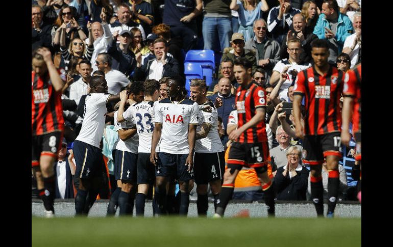 LONDRES, INGLATERRA (16/ABR/2017).- Al acecho. El Tottenham se impuso ayer cómodamente al Bournemouth (15º) por 3-0, por lo que se colocó de manera provisional a cuatro puntos del líder Chelsea, que se enfrentará hoy al Manchester United en Old Trafford, en la Jornada 33 de la Premier League.Los pupilos del técnico argentino Mauricio Pochettino lograron su séptima victoria consecutiva en el campeonato y meten presión al club londinense, que lleva 75 unidades.En tres minutos, el Tottenham marcó dos tantos mediante el belga Mousa Dembélé (16’) y el surcoreano Son Heung-min (19’) y, en la segunda mitad, por Harry Kane (48’) y el holandés Vincent Janssen (90’+2).