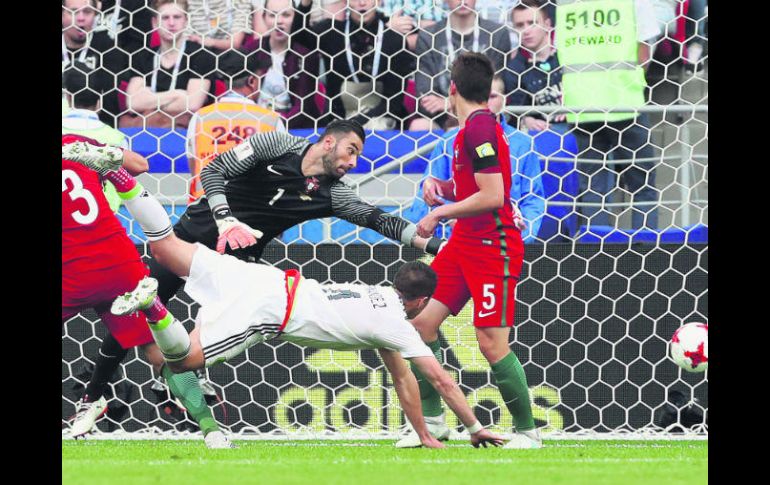 GUADALAJARA, JALISCO (19/JUN/2017).- México fue una montaña rusa de emociones y funcionamiento colectivo e individual en su presentación en la Copa Confederaciones.El Tricolor empató 2-2 con Portugal en Kazán, en duelo que deja a ambas escuadras en el segundo lugar del Grupo A de la Copa Confederaciones con un punto, a dos del líder Rusia que venció en la inauguración del torneo a Nueva Zelanda.Más allá de lo que pueda dictar un empate ante el campeón de Europa, o de enfrentar a uno de los mejores futbolistas de la historia en uno de sus mejores momentos, México parece dejarle a Juan Carlos Osorio la misma cantidad de apuntes con pluma azul (aspectos positivos) que con pluma roja (aspectos negativos).La historia del cotejo parece un guion de Hollywood.Inicio estelarHabía la curiosidad de ver al Tri fuera del cobijo de Concacaf, donde ha retomado el comando del área.Osorio mantuvo alguna de sus necedades: Carlos Salcedo como lateral derecho, le dio a Layún la titularidad sobre Luis Reyes, pese a lo poco que jugó el veracruzano últimamente, y mandó a Carlos Vela a jugar como una especie de volante por derecha para que Guardado pudiera reaparecer en su franja izquierda.El colombiano mandó al Tri a morder en todo el campo al campeón de Europa, no le dio respiro y hasta lo hizo ver mal. Fueron 20 minutos prometedores en los que igual México no generó nada importante al frente.De terrorCumplidos 20 minutos de juego, Cristiano Ronaldo estrelló una pelota en el larguero que terminó después en gol y unos minutos más tarde en un tanto anulado por la tecnología.El pelotazo al travesaño de Cristiano asustó al equipo nacional, que dejó de morder y trasladar la pelota. A Portugal le bastaron 14 minutos de dominio para hacerle el gol al Tri, en una falla infantil de Salcedo.Cristiano escapó al área, falló en su gambeta, pero la zaga estaba tan horrorizada de verlo tan cerca de Ochoa que olvidó toda disposición táctica, se fueron sobre él y dejaron solo a Quaresma, quien vacunó sin problemas a Ochoa.RespiroEso fue lo que encontró México sobre el final del primer tiempo, cuando la zaga portuguesa falló a dos minutos del silbatazo del entretiempo.El Tri requirió de 37 minutos para disparar a portería por vez primera en el juego. La segunda vez que lo hizo fue gol, al 43’ con una combinación que es letal desde 2005, cuando México fue campeón mundial Sub-17: Vela-”Chicharito”. El goleador tapatío recibió un centro de Vela y con potente remate de cabeza venció a Rui Patrício.InestableEn la segunda mitad México debió pelear contra un rival que no acababa de ser intenso ni letal, pero también con las decisiones de su técnico.Al minuto 57 Osorio sacó a Vela para meter a Giovanni y el Tri perdió conexión ofensiva.Ciertamente corrigió a medias al sacar al errático Salcedo para meter a Araujo —otro central de lateral—, pero nunca se animó a tocar a un desconectado Layún.Final explosivoSu terquedad le cobró factura a Osorio.Guillermo Ochoa acababa de hacer la atajada del torneo cuando Layún pierde con Gelson en un mano a mano por izquierda, los rebotes favorecen a Cedric, que fusila a Ochoa. 1-2 a cinco minutos del final.Portugal le iba a ganar a México sin necesidad de que Cristiano apareciera en el marcador.Pero el Tri recordó que cuando falla el funcionamiento hay mística.Y cuando se jugaba el primer minuto de reposición Moreno conecta de cabeza en el área chica con todo y la falta continua de Fonte, para empatar 2-2 un duelo que parecía perdido.Ya no había tiempo para escribir otro capítulo u otro final.MOMENTOS CLAVESe asustaron Minuto 20. México se vio beneficiado por la ayuda de la repetición, así le anularon lo que era el primer gol a Portugal. Sin embargo, lejos de continuar con su plan de juego, los aztecas sintieron el peligro, se pertrecharon y le dejaron el mando del juego a los europeos, con la consabida consecuencia de verse abajo en el marcador.Golpe perfecto Minuto 43. Cuando México peor jugaba y sólo esperaba que la primera mitad terminara con la mínima desventaja, el Tricolor encontró el empate. Al igual que en el gol portugués, el Tri aprovechó un error defensivo que Carlos Vela canjeó por un servicio de gol para el “Chicharito”, quien le dio al equipo nacional la posibilidad de replantear el juego en el descanso desde la igualada y no la derrota parcial.Lo descompuso Minuto 57. Juan Carlos Osorio decidió mandar su primer cambio antes de que se cumpliera la hora de partido. El colombiano sacó a Carlos Vela para meter a Giovanni dos Santos. A partir de ese momento el Tri dejó de generar peligro o de hilvanar llegadas bien acompañado. Con Vela se fueron las ideas y el control del juego a la ofensiva. Giovanni nunca pudo meterse al ritmo del partido ni marcó diferencia encarando rivales.LA FIGURA Guillermo Ochoa (México)En un partido donde todo el equipo tuvo altas y bajas en lo individual, el portero tapatío Guillermo Ochoa fue consistente.Sus intervenciones fueron atinadas y hasta realizó una de esas grandes atajadas que le caracterizan en un remate de André Silva sobre el final del juego.Justifica su presencia como arquero titular.Incluso sacó una pelota que desvió Carlos Salcedo que pudo terminar en autogol.LA VOZ DEL EXPERTOMéxico fue contundente Arturo Pacheco (analista deportivo)Porque Portugal no aprovechó sus oportunidades y México fue contundente (Ochoa, figura; Rui Patrício, casi espectador). Se jugó como quiso Portugal (así ganó la Euro), México tuvo posesión, pero sin profundidad ni creatividad en la última zona.El Tri tuvo el balón Antonio González (aficionado)México tuvo la posesión del balón, Portugal las jugadas de gol; errores defensivos pusieron a Portugal dos veces arriba. Un cambio incomprensible al sacar al mejor jugador, Vela. Un paradón de Ochoa que pudo liquidar. Al final una jugada a balón parado dio el empate. La tecnología se hizo presente, al anula