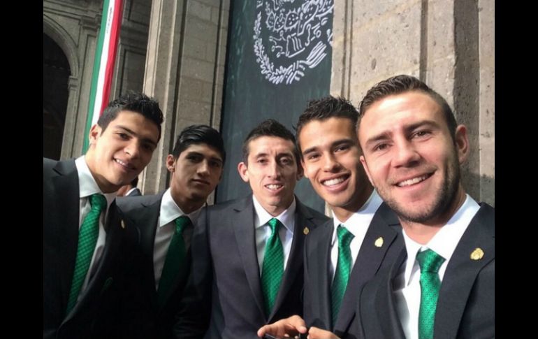 Deportes | El equipo nacional aprovechó para presumir sus fotos en redes sociales El Tri se toma 'selfies' antes de abanderamiento El equipo nacional aprovechó para presumir sus fotos en redes sociales Por: SUN 27 de mayo de 2014 - 12:15 hs CIUDAD DE MÉXICO (27/MAY/2014).- Los miembros de la Selección mexicana se alistaba para su cita con el Presidente Enrique Peña Nieto en Los Pinos. Engalanados para el acontecimiento, los jugadores decidieron tomarse un tiempo para autoretratarse en grupo y subir sus “selfies” a las redes sociales Twitter e Instagram. Vistiendo trajes negros de Ermenegildo Zegna, con el logo del Tri y corbatas verdes, los seleccionados y el cuerpo técnico se reunieron en el Centro de Alto Rendimiento de la Federación Mexicana de Futbol donde tomaron sus fotos. Desde sus cuentas de @MiguelHerreraDT y @yosoy8a, los integrantes del club subieron sus fotos. Los elegidos de Miguel Herrera se reunirán este martes con el Presidente Peña Nieto, un día antes de enfrentarse contra Israel en un amistoso en el Estadio Azteca como parte de su despedida. Temas Futbol Mexicano Selección mexicana Enrique Peña Nieto Redes Sociales Lee También "Jale Seguro", la iniciativa de Ley de diputado de Movimiento Ciudadano Martinoli lanza indirecta a la polémica con Santiago Fernández ¿Dónde ver EN VIVO el partido de J14 Pumas vs San Luis? ¿Dónde ver EN VIVO el partido de J14 Xolos vs Toluca? Recibe las últimas noticias en tu e-mail Todo lo que necesitas saber para comenzar tu día Registrarse implica aceptar los Términos y Condiciones