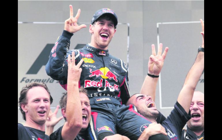 Deportes | Fórmula Uno. Gran Premio de Brasil El joven maravilla En una carrera de locura, Sebastian Vettel conquista su tercer título en la F1 con diferencia de tres puntos sobre Fernando Alonso Por: EL INFORMADOR 26 de noviembre de 2012 - 02:05 hs Sebastian Vettel y los integrantes del equipo Red Bull celebran la obtención de los títulos de pilotos y constructores. REUTERS / GUADALAJARA, JALISCO (26/NOV/2012).- La carrera final del Campeonato Mundial de Fórmula Uno en Brasil no pudo ser en otra tónica que la que se ha vivido a lo largo de la temporada: llena de emoción y dramatismo. Esta competencia arrojó como tricampeón a Sebastian Vettel (Red Bull) con un conservador sexto lugar, en una carrera comprometida por lluvia y errores del equipo de la bebida energética. Previo al inicio de la competencia, Michael Schumacher rodó una vuelta en solitario ondeando una bandera a cuadros con la leyenda en inglés “Thank You”, en agradecimiento a toda la familia de la Fórmula Uno. El heptacampeón se despidió de la máxima categoría del automovilismo tras culminar en séptimo puesto, amarrando el quinto lugar del campeonato de constructores para Mercedes. Después vino el último capítulo del año que inició con una arrancada muy cerrada. Mientras los McLaren de Hamilton y Button se disputaban el primer lugar, llegó la flecha roja de Fernando Alonso para entrometerse entre ambos autos. El asturiano brincaba hasta el segundo puesto, entre tanto Sebastian Vettel se involucró en un fuerte contacto en el giro uno con Bruno Senna –que de paso es el adiós para el sobrino de otro tricampeón mundial, Ayrton Senna, del equipo Williams–, para quedar volteado en sentido contrario y reincorporarse a la competencia en el último puesto. Tras este contacto, Senna y Sergio Pérez (Sauber) fueron los dos primeros en abandonar la carrera, en una despedida gris para el mexicano del equipo suizo. Mucho más gris era el panorama que se avecinaba en el circuito de Interlagos disputado bajo la lluvia. El juego de estrategias comenzaba a rondar las cabezas de los jefes de equipo, comenzando con Schumacher, Kobayashi y Grosjean, quienes largaron con compuestos duros; el resto de la parrilla lo hizo con medias. Vettel remontó rápido de posiciones y antes de las 10 vueltas ya marchaba dentro del top-ten. Hasta ese momento, Alonso era tercero y de culminar así sería el campeón. Pero serían 71 largas vueltas las pactadas y la historia en Interlagos no estaba escrita. Al frente, Hamilton dominó la competencia, junto con su coequipero, Jenson Button. Sin embargo, el “increíble Hulk” (Nico Hulkenberg, de Force India) se hizo presente en la punta, desbancando a los autos ingleses. El piloto que pasará de Force India a Sauber en 2013, estaba dando muestras de su potencial con un coche superior al resto de la parrilla. Este piloto fue líder de la carrera desde la vuelta 18, cuando superó en la recta posterior de la pista, utilizando el DRS (alerón trasero móvil), a Jenson Button. Hamilton superaría de nueva cuenta a Nico en la vuelta 48, aprovechándose de un despiste del auto de “Hulk”. Más tarde, a 18 vueltas del final, Rosberg intenta superar a Hamilton tomando una curva por dentro, pero pierde el control del coche y pega con una de las ruedas del McLaren que intentaba rebasarlo por fuera, para romperle la suspensión delantera. El Force India pudo seguir, pero Lewis ya no, por lo que de esta forma se despidió del equipo que lo vio crecer profesionalmente. Nervios al estilo Red Bull El drama por el campeonato del mundo lo puso el equipo Red Bull. Con Mark Webber en la pista, parecía ser el peor enemigo para su compañero Sebastian Vettel, ya que en un par de ocasiones estuvo cerca de comprometer la continuidad en carrera del alemán, tras intentar rebasarlo, así como un par de despistes, en un mal día para el australiano. Con la lluvia cayendo en las últimas vueltas, inexplicablemente el equipo Red Bull cambió neumáticos en la vuelta 54, para poner las de compuesto intermedio. El equipo parece que no se dio cuenta de este grave error que costó muchos puestos a Vettel, ya que el alemán volvió por decisión propia a boxes para montar las llantas correctas, intermedias para lluvia, dejando en evidencia que al llegar a su pit lane, el equipo ni siquiera estaba listo con las llantas para recibirlo, en una eterna parada. En general fue un momento muy mal trabajado en coordinación. Vettel no se arriesgaría más, e incluso fue ayudado por su compatriota Michael Schumacher, para sumar unos puntitos más, cuando sin exigirle Vettel, el heptacampeón fue fácilmente superado. En la punta, Jenson Button marchaba en solitario, dejando en segundo lugar a los Ferrari de Felipe Massa y Fernando Alonso. Incluso Massa bajó su ritmo para ser superado por Alonso en las últimas 10 vueltas, ayudándole de nueva cuenta para sumar puntos. Al final, el Force India de Paul Di Resta se estrelló contra un muro, en medio de la curva posterior a la recta secundaria, lo que provocó la entrada del Safety Car por segunda ocasión, a tres vueltas del final. Así, la carrera terminaría con un frío podio encabezado por Jenson Button, quien abrió y cerró la temporada con el primer lugar, secundado por Alonso y Massa, siendo este último el que derramó lágrimas, con un dejo de impotencia por no conseguir el campeonato para su equipo. Para 2013, mientras Red Bull ha visto acortada la distancia con respecto a otros equipos punteros, deberán trabajar mucho con el RB9, ya que Ferrari está comprometido a entregarle un buen auto a Fernando Alonso, quien sin duda, fue el mejor piloto de la temporada, por su entrega y contra la adversidad que impuso su mismo F2012. POR CIERTOEl tricampeón más joven Sebastian Vettel se convirtió en el tricampeón más joven de la historia en la Fórmula Uno con 26 victorias en 101 carreras disputadas, tras ganar su tercer mundial de forma consecutiva, a los 25 a