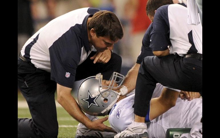 Deportes | Tony Romo, no entrará al quirófano, pero esperará de 6 a 8 semanas para su recuperació El mariscal de campo de los Vaqueros no será operado Tony Romo del conjuto de Dallas, no entrará al quirófano, pero esperará de 6 a 8 semanas para su recuperación Por: AP 26 de octubre de 2010 - 16:57 hs Personal médico atiende al mariscal de campo Tony Romo (cen) tras resultar herido ante el juego de los Gigante. EFE / IRVING, TEXAS (26/OCT/2010) .- Tony Romo no será operado por su fractura en la clavícula izquierda, y los médicos esperan que el quarterback de los Cowboys de Dallas sea baja hasta ocho semanas. Con sólo 10 semanas pendientes en una temporada en la que los Cowboys tienen marca de 1-5, podrían haber pocos motivos para que Romo vuelva a jugar este año. El equipo indicó que Romo fue sometido el martes a más exámenes médicos. Romo se fracturó la clavícula al ser golpeado fuerte por un linebacker en el segundo parcial del partido del lunes por la noche contra los Giants de Nueva York. Temas NFL Futbol Americano Vaqueros de Dallas Lee También México busca frenar el paso perfecto de Argentina en Mundial Sub-20 CEO de Coca-Cola aclara si retiraría patrocinio del Super Bowl Lista actualizada de selecciones que ya clasificaron al Mundial 2026 Mundial 2026 traerá derrama millonaria al país Recibe las últimas noticias en tu e-mail Todo lo que necesitas saber para comenzar tu día Registrarse implica aceptar los Términos y Condiciones