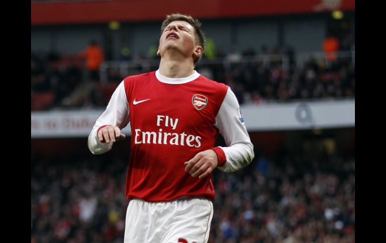 Deportes | Los Gunners empatan 0-0 con el Sunderland Empate amargo para el Arsenal Los Gunners empatan 0-0 con el Sunderland Por: AFP 6 de marzo de 2011 - 02:30 hs El ruso Andrey Arshavin lamenta fallar una ocasión de gol para Arsenal. REUTERS / LONDRES, INGLATERRA (06/MAR/2011).- El Arsenal, segundo clasificado de la Liga inglesa, desaprovechó una gran oportunidad de acercarse al líder Manchester United, al empatar de local 0-0 con el Sunderland, en partido la jornada 29 que trae como plato fuerte el Clásico inglés, entre Liverpool y los Red Devils, que se disputará hoy en Anfield. Tras este empate, Arsenal se quedó a tres puntos del Manchester United, ambos con 28 partidos en este momento, aunque si el líder consigue hoy un resultado positivo, ampliará su ventaja a cuatro o seis unidades, pero contaría con un encuentro más. El equipo de Arsene Wenger no pudo contar con los lesionados Cesc Fábregas, Theo Walcott y Robin van Persie. Resultados de ayer: Birmingham 1-3 West Bromwich Arsenal 0-0 Sunderland Newcastle 1-2 Everton Bolton 3-2 Aston Villa Fulham 3-2 Blackburn West Ham 3-0 Stoke City Manchester City 1-0 Wigan Hoy por TV Liverpool vs. Manchester U. 7:30 horas * Fox Sports Temas Liga Premier Futbol Internacional Futbol Inglés Arsenal Recibe las últimas noticias en tu e-mail Todo lo que necesitas saber para comenzar tu día Registrarse implica aceptar los Términos y Condiciones