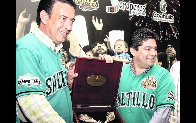 Deportes | Álvaro Ley y su hijo recibieron el reconoccimiento Entregan llaves de la ciudad a Saraperos Humberto Moreira Valdés, gobernador de Coahuila, condecoró a la novenca campeona de la LMB Por: EL INFORMADOR 21 de agosto de 2010 - 01:45 hs Álvaro Ley (izq), propietario de Saraperos, y su hijo Sergio, reciben el reconocimiento. JAMMEDIA / SALTILLO, COAHUILA (21/AGO/2010).- El gobernador de Coahuila, Humberto Moreira Valdés, entregó ayer las llaves de la ciudad de Saltillo al club Saraperos de Saltillo, bicampeones de la Liga Mexicana de Beisbol. Durante una comida celebrada en el Palacio de Gobierno estatal, el gobernador, acompañado por Jericó Abramo Jasso, alcalde de Saltillo, y Vanessa de Moreira, presidenta del DIF estatal, reconoció el esfuerzo y el trabajo de la institución que ha obtenido el campeonato en 2009 y 2010. "Ustedes nos han dado ese orgullo de sentirnos más saltillenses, más Saraperos; nos llevaron el año pasado al campeonato y este al bicampeonato", señaló Moreira. Como parte del reconocimiento del gobierno estatal por este logro deportivo, Moreira Valdés pidió al alcalde de Saltillo que la próxima colonia o fraccionamiento que se funde en la ciudad, lleve el nombre "Saraperos" y sus calles sean nombradas conforme a la plantilla de beisbolistas. Moreira entregó a cada uno de los integrantes del club un sarape típico de la ciudad y una placa de reconocimiento. Los Saraperos de Saltillo consiguieron un contundente triunfo de 4 juegos a 1 en contra de los Pericos de Puebla, en la Serie Bicentenario, que definió al ganador de la temporada 2010 de la Liga Mexicana de Beisbol. Temas Beisbol Liga Mexicana de Beisbol LMB Lee También Buen Fin 2025: las fechas y el día que más conviene comprar este año Calendario de partidos de la J14 del Apertura 2025 Los Charros de Jalisco se quedan con las ganas México pierde empresas y genera menos empleo Recibe las últimas noticias en tu e-mail Todo lo que necesitas saber para comenzar tu día Registrarse implica aceptar los Términos y Condiciones