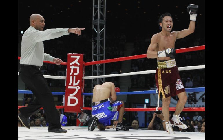 Deportes | El mexicano es noqueado en el round 11 por Shinsuke Yamanaka Esquivel pierde el título gallo CMB El mexicano es noqueado en el round 11 por Shinsuke Yamanaka Por: NTX 6 de noviembre de 2011 - 14:03 hs Yamanaka (der.) venció apretadamente al mexicano Esquivel. REUTERS / TOKIO, JAPÓN (06/NOV/2011).- El japonés Shinsuke Yamanaka ganó por nocaut en el undécimo round al mexicano Cristian Esquivel y se adjudicó el vacante campeonato mundial gallo del CMB, en pelea realizada en la capital japonesa. El imbatido Yamanaka (15-0-2, 11 nocauts), de guardia zurda y fuerte pegada, derribó al peleador mexiquense en tres ocasiones durante la contienda, en los rounds seis, siete y 11. Cristian Esquivel (24-3, 18 ko’s) falló en su primera oportunidad de ceñirse una corona mundial. En la misma velada, el local Toshiyuki Igarashi ganó por decisión unánime al mexicano Wilbelt Uicab (33-6-1, 18 ko’s), en una pelea eliminatoria para disputar el título mosca del Consejo Mundial de Boxeo (CMB) que ostenta el tailandés Pongsaklek Wonjongkam. Igarashi (15-1-1, 10 ko´s) terminó arriba en las tarjetas con calificaciones de 116-112, 114-113 y 116-111. Temas CMB Boxeo Recibe las últimas noticias en tu e-mail Todo lo que necesitas saber para comenzar tu día Registrarse implica aceptar los Términos y Condiciones