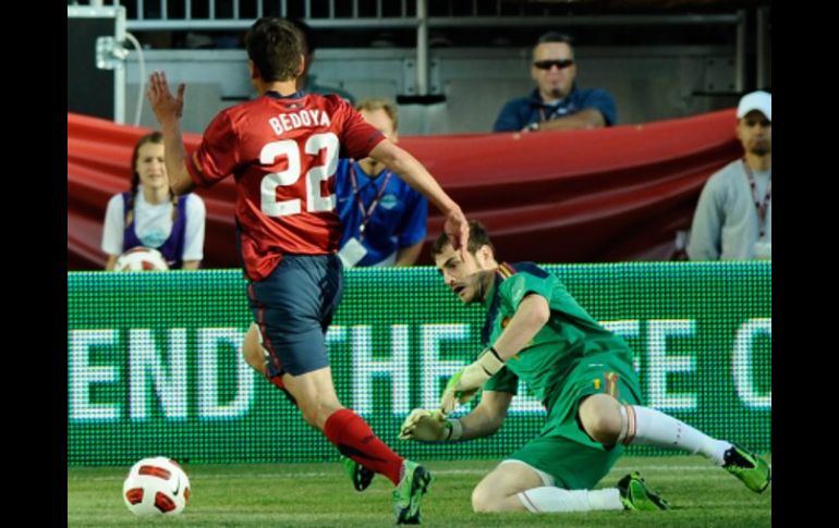 Deportes | A tres días de su debut en Copa Oro, la selección quedó en mal papel tras perder 4-0 Estados Unidos muestra su lado débil ante España A tres días de su debut en Copa Oro, la selección quedó en mal papel tras perder 4-0 en partido amistoso Por: EFE 4 de junio de 2011 - 17:33 hs Los jugadores de la Selección de Estados Unidos no pudieron marcar ante el portero español, Iker Casillas. EFE / BOSTON, MASSACHUSETTS (04/JUN/2011).- El seleccionador estadounidense de fútbol, Bob Bradley, afirmó hoy que sus pupilos no tuvieron "la energía suficiente" para hacer frente "al mejor equipo del mundo" y admitió que el ensayo no le permitió ajustar ciertos puntos que quería para su debut en la Copa Oro, el 7 de junio contra Canadá. "Sabíamos que estábamos ante el mejor equipo del mundo, pero nosotros no tuvimos la energía suficiente para hacerles frente", declaró Bradley al término del partido amistoso que perdieron por 0-4 en Boston. "Queríamos ver algunas cosas de preparación para la Copa Oro, pero me hubiese gustado tener más protagonismo en el partido", apostilló. Estados Unidos, que a partir del martes comienza frente a Canadá su andadura en la undécima edición de la Copa Oro, dijo que, al margen del resultado adverso, haber enfrentado a España les iba a venir muy bien para corregir errores y ajustar líneas. "Seguro que vamos a sacar los elementos positivos que tuvimos en el partido y a corregir errores en la manera como nos posicionamos en el campo y, sobre todo, en la poca consistencia y presión que tuvimos en la defensa", destacó Braley. El guardameta Tim Howard, que fue el que más sufrió la presión del ataque de la selección de España, criticó el desempeño de su defensa. "Dimos muchas facilidades. No tuvimos concentración y tampoco hicimos bien los marcajes", declaró Howard. "No es nada agradable que te hagan cuatro goles, pero creo que en la segunda parte fuimos más el equipo que luche por el título en la Copa Oro". Howard reconoció como Bradley que se trataba de un partido amistoso ante el campeón del mundo, y que aunque no dieron la mejor de la imagen estaban listos para realizar una buena labor cuando de comienzo la competición de la Copa Oro. "Estamos mentalizados para volver a luchar por el título y esta derrota nos debe servir como experiencia para hacer mejor las cosas en la Copa Oro, que ahora será nuestro gran objetivo", agregó Howard, que jugó el 59 partido internacional con la selección. Temas Selección de Estados Unidos Selección de España Copa Oro 2011 Lee También TODO sobre el frente frío que perturbará a México en horas Fenómenos traerán lluvias torrenciales a estas regiones de México México vs Argentina: Fecha y horario para los cuartos de final del Mundial Sub-20 México vs Argentina, una rivalidad que vuelve a encenderse en el Mundial Sub-20 Recibe las últimas noticias en tu e-mail Todo lo que necesitas saber para comenzar tu día Registrarse implica aceptar los Términos y Condiciones