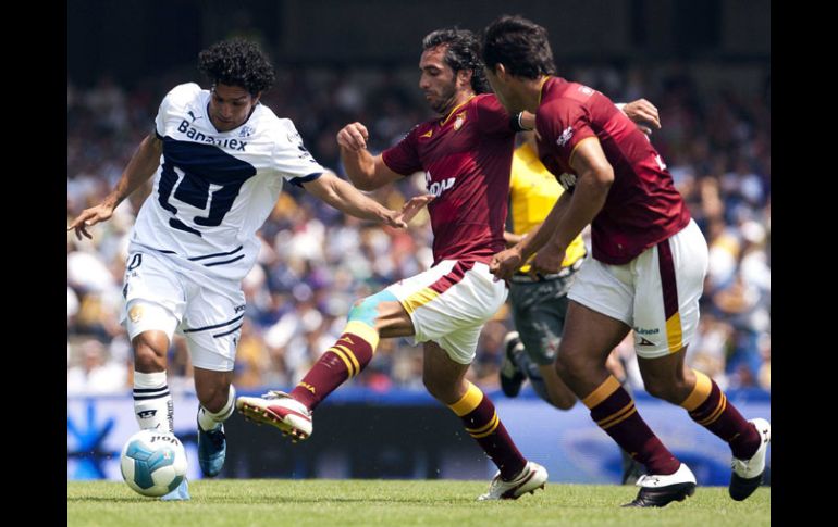 Deportes | El cuadro de la Autónoma salió a no perder y sigue respirando en la tabla del descenso Estudiantes empata y saca un punto ante Pumas El cuadro de la Autónoma salió a no perder y sigue respirando en la tabla del descenso Por: NTX 11 de marzo de 2012 - 13:24 hs Martin Bravo dispara ante la marca de Juan Carlos Leaño de Estudiantes. MEXSPORT / MÉXICO, D.F. (11/MAR/2012).- Los Pumas de la UNAM no pudo con el sotanero Estudiantes Tecos en flojo partido que terminó empatado sin goles en el cierre de la jornada 10 del torneo Clausura 2012 del futbol mexicano. En el juego disputado en el estadio Olímpico Universitario, ambos conjuntos quedaron reprobados y salieron con un punto, con el que Pumas apenas llega a 10 en la clasificación general, en tanto que Estudiantes sumó seis, pero en la porcentual continúa respirando al seguir con el mismo cociente (1.0000) con los mismos siete puntos de distancia en relación al Atlas. Consciente de su situación en la tabla porcentual, el conjunto zapopano llegó al Universitario a hacer su partido y se paró en la cancha para complicarle su accionar a la escuadra local, incluso en los primeros minutos metió en apuros al portero Alejandro Palacios. Pumas, por su parte, tardó un poco en aplicarse en el terreno de juego, lo que le costó generar llegadas de peligro sobre el marco de Christian Martínez, aunque el argentino Martín Bravo buscó otras opciones con su velocidad y disparos lejanos. Ambos equipos cayeron en una serie de imprecisiones en el trazado del balón y al momento de dar el pase al compañero, pero ninguno de los dos supo aprovechar esta serie de equivocaciones y se fueron al descanso sin hacerse daño. Para la segunda parte, Pumas salió un poco más ofensivo y comenzó a tocar la puerta de Christian Martínez, quien gracias a su actuación junto a su defensa y a los postes mantuvo inviolable su meta, tanto que en el minuto 50 salió en contragolpe y Martín Bravo sacó disparo lejano que impactó el travesaño de la meta del visitante. Seis minutos después, al 56, Luis Fuentes se animó a irse al ataque por su sector izquierdo, hizo pared con Bravo y con el espacio sacó derechazo que pasó cerca del poste derecho de la meta de Martínez. Los auriazules siguieron insistiendo en estos minutos de dominio, y en el 59 Martín Bravo entró por izquierda, se quitó al portero visitante y envió un centro que Juan Carlos Cacho no alcanzó. Luego de esos avisos el técnico de Estudiantes, el uruguayo Héctor Hugo Eugui, modificó su esquema defensivo y le complicó la llegada a Pumas, lo cual disminuyó el ritmo del encuentro, aunque el conjunto zapopano ya había nivelado las acciones cortando llegadas de Pumas. El trabajo del silbante Miguel Ángel Chacón fue bueno. Por Pumas amonestó a Fernando Espinosa, a quien expulsó en el minuto 90 por doble amarilla, mientras que Juan Carlos Leaño, de Tecos, vio la amarilla. Alineaciones: UNAM.- Alejandro Palacios, Luis Fuentes, Marco Antonio Palacios, Darío Verón, Efraín Velarde, José Antonio García (Eduardo Herrera, minuto 68), David Cabrera, Fernando Espinosa, Javier Cortés, Emilio Orrantia (Juan Carlos Cacho, minuto 36) y Martín Bravo (Michelle Castro, minuto 75). DT Guillermo Vázquez. Estudiantes.- Christian Martínez, Mario Pérez, Osvaldo Alanis, Juan Carlos Leaño, José Antonio Castro, Alejandro Castro, Braulio Luna, Rubens Sambueza (Gerardo Galindo, minuto 66), Édgar Solís (Gabriel Pereyra, minuto 83), Fredy Bareiro y Fernando Gutiérrez (Elgabry Rangel, minuto 59). DT Héctor Hugo Eugui. Temas Futbol Mexicano Pumas de la UNAM Estudiantes Tecos Torneo Clausura 2012 Lee También Calendario de partidos de la J13 del Apertura 2025 Hirving Lozano confía en el proceso del Tri César Huerta destaca la competencia interna en la Selección Mexicana Futbol hoy 15 de octubre de 2025: ¿Dónde ver los partidos en vivo? Recibe las últimas noticias en tu e-mail Todo lo que necesitas saber para comenzar tu día Registrarse implica aceptar los Términos y Condiciones