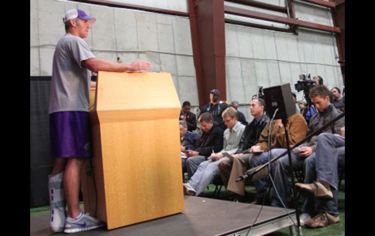 Deportes | Brett Favre quiere ser el quarterback titular a pesar de sus dos fracturas Favre espera ser titular contra Patriotas A pesar de las dos fracturas en el tobillo izquierdo de Favre, espera ser el quarterback titular Por: AP 30 de octubre de 2010 - 19:21 hs En caso de que juegue Brett Favre sumará 291 partidos consecutivos como titular en juegos de temporada regular. AP / EDEN PRAIRIE, MINNESOTA (31/OCT/2010).- Brett Favre le dijo a ESPN que espera ser el quarterback titular de los Vikingos el domingo contra los Patriotas de Nueva Inglaterra, a pesar de que tiene dos fracturas en el tobillo izquierdo. La cadena de televisión reportó el sábado que Favre afirmó en una entrevista telefónica que sus lesiones sanaron bastante y que su intención es ser titular, lo que extendería su récord de 291 partidos consecutivos como titular en juegos de temporada regular. Favre utilizó una bota especial en los primeros tres días de la semana y no entrenó sino hasta el viernes con el equipo, aunque tuvo una participación limitada en su primera práctica de la semana. Utilizó una venda en el tobillo. Favre se lesionó en el partido que perdieron ante los Packers de Green Bay el pasado fin de semana. El quarterback indicó que quería jugar para ayudar a sus Vikingos (2-4) a mejorar su desempeño luego de un mal comienzo de la temporada. El entrenador Brad Childress dijo el viernes que ``probablemente'' esperará hasta unas horas antes del partido para decidir si Favre es titular. Indicó que su decisión la tomará en base a ``si puede protegerse y si nos puede dar la mejor posibilidad de ganar''. Los mensajes enviados por The Associated Press al equipo y al entrenador solicitándoles un comentario no fueron contestados de inmediato. Los Vikingos estaban viajando a Boston. Favre fue colocado como duda en la lista de lesionados el viernes, lo que le da el 50% de posibilidades de que pueda jugar en el partido. Lo que le complica la decisión a Childress es el significado histórico de la racha de partidos consecutivos de Favre y el pobre desempeño del quarterback de 41 años en esta temporada. Tiene una clasificación de 68.0 puntos como quarterback, 30mo en la liga, y ha entregado 14 balones en los primeros seis partidos. Temas NFL Futbol Americano Patriotas de Nueva Inglaterra Vikingos de Minnesota Recibe las últimas noticias en tu e-mail Todo lo que necesitas saber para comenzar tu día Registrarse implica aceptar los Términos y Condiciones