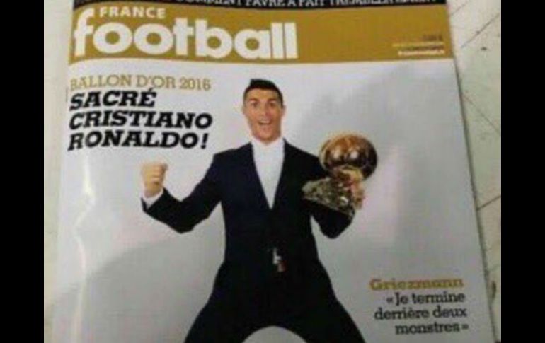 GUADALAJARA, JALISCO (12/DIC/2016).- A través de internet se ha filtrado la portada de la revista France Football en la que aparece Cristiano Ronaldo como presunto ganador del Balón de Oro 2016.En segundo lugar habría quedado el jugador argentino Lionel Messi y el francés Antoine Griezmann en el tercer sitio.Sin embargo, los resultados de la premiación no serán oficiales si no hasta las 20:00 horas tiempo de Francia.Con este título sumarían ya cuatro galardones en esta categoría para el futbolista portugués, quien se quedaría tan sólo un premio de los cinco con los que cuenta el argentino Lionel Messi.El evento de premiación dio inicio a las 10:30 horas de la Ciudad de México y durante el transcurso de esta mañana se ha ido revelando la lista de los ganadores.Varios compañeros de Cristiano Ronaldo han declarado que el títuro es bien merecido por el portugués pues aseguran que ha tenido un año maravilloso y sus éxitos de la temporada son incomparables.Puedes consultar la lista de ganadores AQUÍ.