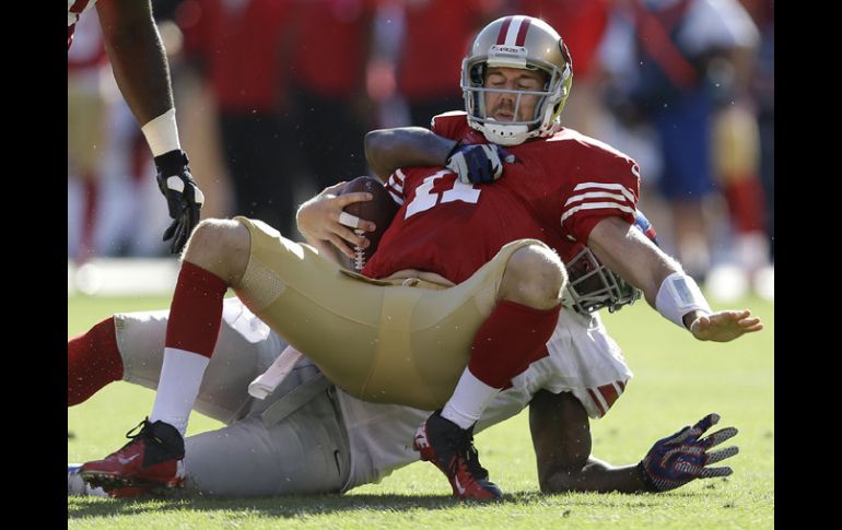 Deportes | Nueva York y su defensiva doblegan 26-3 a San Francisco en su campo Gigantes domina a los 49ers Nueva York y su defensiva doblegan 26-3 a San Francisco en su campo Por: AP 14 de octubre de 2012 - 18:33 hs Alex Smith pagó el precio ante la defensiva de los Gigantes. AP / SAN FRANCISCO, CALIFORNIA (14/OCT/2012).- Antrel Rolle interceptó dos pases a Alex Smith, Prince Amukamara se robó otro y los Giants apalearon a San Francisco al imponerse el domingo por 26-3 sobre los 49ers en la revancha del juego de campeonato de la Conferencia Nacional del año pasado. Luego de superar a los Bills y Jets por marcador combinado de 79-3 las dos semanas anteriores, los 49ers (4-2) encontraron la horma de su zapato en Eli Manning y el equipo de Nueva York. Sin necesidad de tiempo extra esta vez, y tampoco con mucho de Manning. Manning lanzó para 193 yardas y un touchdown, Ahmad Bradshaw corrió para 116 yardas y una anotación y los Giants (4-2) mantuvieron una defensiva dominante, además de cuatro goles de campo de Lawrence Tynes, para propinarle al entrenador de los 49ers Jim Harbaugh la peor derrota durante su ciclo en San Francisco. Temas NFL Futbol Americano Gigantes de Nueva York 49ers de San Francisco Lee También México listo para un nuevo desafío en el Mundial Sub-17 Femenil Todas las selecciones que han calificado al Mundial 2026 hasta hoy Chivas y América calientan en redes el Clásico Nacional de la Fecha FIFA Barcelona interesado en Gilberto Mora, esto es lo que se sabe Recibe las últimas noticias en tu e-mail Todo lo que necesitas saber para comenzar tu día Registrarse implica aceptar los Términos y Condiciones