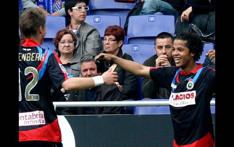 Deportes | El mexicano anota el gol del triunfo de 2-1 sobre el Espanyol Gio da la victoria al Racing de Santander El mexicano anota el gol del triunfo de 2-1 sobre el Espanyol Por: EFE 3 de abril de 2011 - 11:43 hs Dos Santos (der.) anotó de cabeza en el minuto 76, en una jugada nacida en un córner. EFE / BARCELONA, ESPAÑA (03/ABR/2011).- El mexicano Giovanni Dos Santos marcó el tanto de la victoria del Racing de Santander en campo del Espanyol (5º) por 2-1, en la 30ª jornada de la liga española, con lo que el equipo cántabro, pasó a ocupar la undécima plaza. Dos Santos anotó de cabeza en el minuto 76, en una jugada nacida en un córner que lanzó el sueco Kennedy Bakircioglu y que en un primer momento remató en semifallo el centrocampista argelino Mehdi Lacen. El Racing de Santander dio la vuelta al marcador, ya que el argentino Pablo Daniel Osvaldo había adelantado al Espanyol de penal en el 37, para después imponerse con los tantos de Gonzalo Colsa (50) y Dos Santos, que sería sustituido en el minuto 82. Otra de las sorpresas de la jornada la dio el Hércules (18º), que se impuso en campo de la Real Sociedad (14º) por 3-1, con un doblete del holandés Royston Drenthe en los últimos minutos (84 y 89), que se unió al primer tanto marcado por Javier Portillo (69). La Real Sociedad redujo diferencias en el descuento por medio del uruguayo Diego Ifrán (90+3), pero no pudo evitar la derrota ante un Hércules que parece con la llegada al banquillo del serbio Miroslav Djukic, que logró la victoria en su debut en el banquillo del equipo alicantino. Por su parte, el Levante sigue su marcha ascendente y ya es noveno tras vencer este domingo al Málaga del técnico chileno Manuel Pellegrini por 3-1, por lo que el equipo andaluz ocupa la 19ª y penúltima plaza. Los goles del Levante fueron anotados por el uruguayo Christian Stuani, que logró un doblete (6, 71) y por Rubén Suárez (9), campeón del mundo sub-20 en Nigeria-99 con España, en la generación de Xavi Hernández e Iker Casillas, e hijo del jugador asturiano Cundi, que destacó en el Sporting en los 70 y 80. El tanto del Málaga fue anotado por otro uruguayo, Sebastián Fernández, en el 61. Por último, el Deportivo La Coruña (16º) se impuso por 2-1 al Mallorca (10º), con tantos de Franciso Jiménez 'Xisco' (56) y el franco-tunecino Lassad Nouioui (67), que dieron la vuelta al marcador, después de que se adelantaran los baleares por medio del camerunés Pierre Webó (27). En los partidos del sábado, el Barcelona dio un paso de gigante hacia el título tras vencer en terreno del Villarreal (4º) por 1-0, ampliando su ventaja a ocho puntos sobre el Real Madrid, que perdió en casa con el Sporting de Gijón (13º) por 1-0. Por su parte, el Valencia se hizo con la tercera plaza, desplazando al Villarreal, que queda a tres puntos, tras su victoria en campo del Getafe (15º) por 4-2, con cuatro tantos de Roberto Soldado ante su antiguo equipo, todos en el segundo tiempo. Temas Futbol Español Futbol Internacional Giovani dos Santos Lee También Chivas viaja a Querétaro sin dos jugadores Chivas busca ante Querétaro dar otro paso rumbo a la Liguilla Liga MX: Este será el único partido de la Jornada 14 que va por TV abierta ¿Dónde ver EN VIVO el partido de J14 Pumas vs San Luis? Recibe las últimas noticias en tu e-mail Todo lo que necesitas saber para comenzar tu día Registrarse implica aceptar los Términos y Condiciones