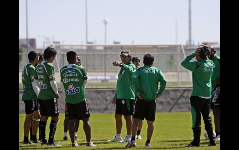 Rubén Omar Romano, técnico de Santos, da indicaciones a los jugadores durante el entrenamiento del jueves. JAMMEDIA  /