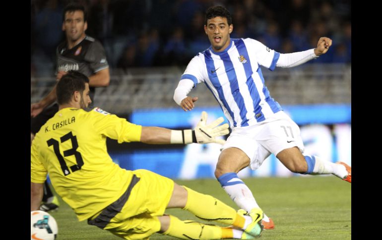 Cuando el empate 1-1 estaba prácticamente definido, el jugador quintanarroense mostró sus buenas condiciones futbolísticas con un golazo que hizo despertar Anoeta en esta fecha 34 de la Liga de España. Markel Bergara en una de las últimas acciones envió pase largo a Carlos Vela, quien hizo control dirigido con el pecho, se quitó el cruce de un defensa y con suavidad venció al portero Kiko Casilla para colocar el 2-1 a los 90 minutos. El atacante mexicano de la Real Sociedad volvió a marcar en la temporada, luego que no lo hacía desde el 27 de marzo frente al Valladolid cuando su anotación también significó el triunfo. Su desprecio a la selección mexicana no le impide a Vela Garrido ser una pieza vital en el equipo "Txuri Urdin", que llegó a 54 unidades para colocarse en el sexto escalón que le permite jugar la Liga Europea momentáneamente a la espera de lo que haga el lunes el Villarreal, que tiene 52 y que jugará frente a Málaga. El Espanyol parece no querer amarrar la permanencia en la máxima categoría del futbol español, hilvanó su cuarto partido triunfar, se estancó con 41 puntos en el décimo escalón. Los "Periquitos" mostraron buena imagen en Anoeta, se pusieron adelante gracias a una buena acción del colombiano Jhon Córdoba, quien se dio la media vuelta desde tres cuartos de cancha y de frente al chileno Claudio Bravo anotó el 1-0, al minuto 23. La Real logró la paridad de 1-1 con un disparo desviado por el jugador visitante Manuel Lanzarote en un intento de centro por parte de Sergio Canales para certificar así el autogol al minuto 32, con poco los vascos empataron. Con la igualada los pupilos del mexicano Javier Aguirre tuvieron ocasiones de gol, al igual que la Real Sociedad, pero la jugada que marcó el partido fue la falla del zaguero argentino Diego Colotto, quien de frente al arco no pudo anotar de cabeza. El error fue costoso para el Espanyol, que en la siguiente acción recibió la anotación de Carlos Vela en una jugada en la que el cuadro catalán también debió extrañar al lesionado defensa mexicano Héctor Moreno, quien no fue considerado.