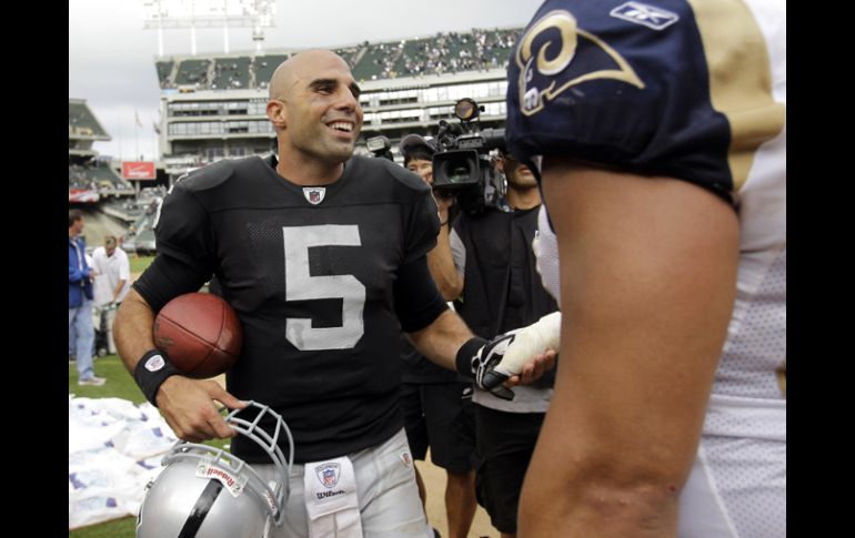 Deportes | Primer partido de los Raiders en casa Gradkowski levanta a Oakland El mariscal de campo Bruce Gradkowski tuvo que hacer el trabajo de un inefectivo Jason Campbell con tres ofensivas para anotación Por: AFP 19 de septiembre de 2010 - 18:35 hs Bruce Gradkowski (5) sonríe después de ganar el partido ante los Carneros. AP / OAKLAND, CALIFORNIA (19/SEP/2010).- El mariscal de campo Bruce Gradkowski tuvo que hacer el trabajo de un inefectivo Jason Campbell después de la primera mitad y condujo el domingo a los Raiders en tres ofensivas para anotación en la victoria de Oakland por 16-14 sobre los Carneros de San Luis. En el primer partido de los Raiders en casa, Gradkowski lanzó pase de cuatro yardas para touchdown a Louis Murphy, Darren McFadden ganó 145 yardas por tierra y Sebastian Janikowski conectó tres goles de campo para dar a Oakland (1-1) su primer triunfo en el partido inicial de temporada en casa desde el 2004. Sam Bradford lanzó dos pases para anotación a Mark Clayton, pero fue incapaz de lograr que avanzara su ofensiva durante gran parte de la segunda mitad y los Carneros (0-2) perdieron por 27ma ocasión en 28 juegos. Temas NFL Futbol Americano Raiders de Oakland Carneros de Los Ángeles Lee También Calendario de partidos de la J13 del Apertura 2025 Hirving Lozano confía en el proceso del Tri César Huerta destaca la competencia interna en la Selección Mexicana Futbol hoy 15 de octubre de 2025: ¿Dónde ver los partidos en vivo? Recibe las últimas noticias en tu e-mail Todo lo que necesitas saber para comenzar tu día Registrarse implica aceptar los Términos y Condiciones