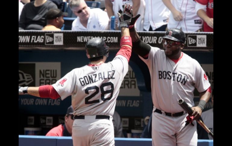 Deportes | González inicia lluvia de jonrones y Ortíz vuelve a conectar, para vencer 14-1 Gran victoria de Boston sobre Toronto González inicia lluvia de jonrones y Ortíz vuelve a conectar, para vencer 14-1 a los Azulejos Por: EFE 12 de junio de 2011 - 16:19 hs El mexicano Adrián González festeja con su compañero David Ortíz. AFP / TORONTO, CANADÁ (12/JUN/2011).- El bateador designado dominicano David Ortiz participó en la lluvia de jonrones para los Medias Rojas de Boston, que sumaron nueve victorias consecutivas al vencer 14-1 a los Azulejos de Toronto. Con su victoria, los Medias Rojas, que tuvieron un inicio de campaña de 2-10, con los primeros seis juegos perdidos, se afianzan como líderes en la División Este de la Liga Americana, con dos juegos de ventaja sobre los Yanquis de Nueva York, que vencieron 9-1 a los Indios de Cleveland. Menos de 24 horas después de que Ortiz conectó de cuatro esquinas, volvió a sacar la pelota del campo para tomar parte en el ataque de cuatro vuelacercas de la novena de Boston. El primera base mexicano Adrián González (13) se encargó de iniciar el ataque con el poder de su bate, al conectar de vuelta entera en el primer episodio, sin gente en circulación. González estudió la serpentina del abridor Kyle Drabek, a quien le botó la pelota hacia la calle, cuando había dos outs en la pizarra, e inició un ataque que se completó con 17 imparables. En el quinto episodio Ortiz (17) se hizo presente con su segundo vuelacercas consecutivo, al pegar de cuatro esquinas contra Drabek. Ortiz, que ligó su vuelacercas 17, castigó al abridor cuando había dos corredores en base y el serpentinero no había conseguido ni un out del episodio. El segunda base Dustin Pedroia (5) y el antesalista Kevin Youkilis (9) también hicieron sonar los maderos contra la novena canadiense. En la lomita el triunfo le correspondió al abridor Jon Lester (9-2) en ocho episodios, permitió dos imparables, un jonrón, una carrera, dio una base y retiró a ocho por ponche. La derrota fue para Drabek (4-5) en cuatro episodios, permitió siete imparables, tres jonrones, ocho carreras, dio cuatro bases y retiró a cinco ponches. Temas Beisbol MLB Medias Rojas de Boston Recibe las últimas noticias en tu e-mail Todo lo que necesitas saber para comenzar tu día Registrarse implica aceptar los Términos y Condiciones