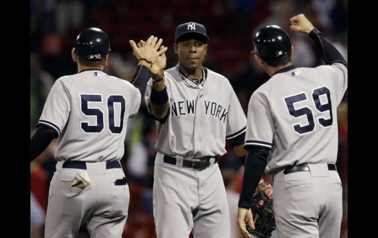Deportes | Los de Nueva York vencieron 5-4 a los Medias Rojas de Boston Granderson y Canó impulsan el triunfo de los Yankees Los de Nueva York vencieron 5-4 a los Medias Rojas de Boston impulados por las actuaciones de Granderson y Canó Por: EFE 13 de septiembre de 2012 - 07:46 hs Curtis Granderson (c) celebra el triunfo con Mick Kelleher (50) y Rob Thomson (59). AP / NUEVA YORK, ESTADOS UNIDOS (13/SEP/2012).- El guardabosques Curtis Granderson pegó dos jonrones y el segunda base dominicano Robinson Canó también se voló la barda para los Yankees de Nueva York, que derrotaron 5-4 a los Medias Rojas de Boston. Los Yankees (80-62) siguen liderando la División Este de la Liga Americana, empatados con los Orioles de Baltimore. Granderson (37) inició su castigo con batazo de vuelta entera en el cuarto episodio, solitario, y en la séptima entrada volvió a botar la pelota del campo, con un corredor por delante. Canó (30) hizo sonar el madero en la cuarta entrada contra los servicios del abridor Aaron Cook. El dominicano le desapareció la pelota a Cook cuando había un corredor por delante, con un corredor en circulación, sin outs en la entrada. El triunfo fue para el abridor David Phelps (4-4) en cinco entradas y dos tercios, permitió cinco imparables, una carrera, dio una base y ponchó a cinco. El cerrador dominicano Rafael Soriano (37) se acreditó rescate en una entrada y un tercio, permitió un jonrón, una carrera y retiró a uno por ponche. Los Medias Rojas perdieron con el abridor Aaron Cook (3-10) en cinco episodios, aceptó siete imparables, dos jonrones, tres carreras y ponchó a dos. Temas Beisbol MLB Yankees de Nueva York Lee También Charros de Jalisco doblega a Guasave y gana su primera serie de la temporada El juego por el que Ohtani hizo recordar al histórico Babe Ruth Marineros vencen a Azulejos y están a un triunfo de su primera Serie Mundial Charros de Jalisco remonta y vence a Guasave con una gran noche de Bligh Madris Recibe las últimas noticias en tu e-mail Todo lo que necesitas saber para comenzar tu día Registrarse implica aceptar los Términos y Condiciones