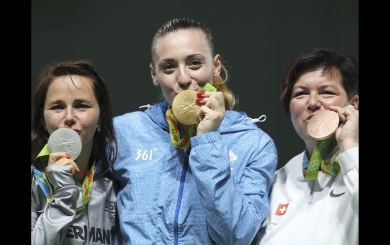 RÍO DE JANEIRO, BRASIL (09/AGO/2016) .- La griega Anna Korakaki se adjudicó este martes la medalla de oro en la prueba de 25 metros pistola femenino de la disciplina de tiro de los Juegos Olímpicos de Río 2016, al vencer por 8-6 a la alemana Monika Karsch.En el Centro Olímpico de Tiro, la suiza Heidi Diethelm Gerber se colgó la presea de bronce tras imponerse por 8-4 a la tiradora china Jingjing Zhang, quien logró un récord olímpico en la etapa de calificación previa.Korakaki logró dos puntos en sus series números uno, dos, tres y siete, tras acertar tres, cuatro, cuatro y cuatro disparos en blancos, para un total de ocho puntos que le dieron la presea dorada.Por su parte, la germana Karsch logró dos puntos en sus series números cuatro, cinco y seis, con cuatro, cuatro y tres aciertos, para un total de seis puntos y quedarse así con el metal plateado.En tanto, la suiza Diethelm tuvo más blancos acertados en sus seis series para vencer por 8-4 final a la china Zhang, quien en la ronda previa de calificación impuso nueva marca olímpica con un registro de 592.La china Zhang logró 293 puntos en la prueba de precisión y 299 en la de velocidad, para imponer así el nuevo récord olímpico. El registro anterior era de la coreana Jangmi Kim, con un total de 591.Clasificación final de la prueba de 25 metros pistola femenino: 1. Anna Korakaki (GRE) Oro 2. Monika Karsch (ALE) Plata 3. Heidi Diethelm Gerber (SUI) Bronce 4. Jingjing Zhang (CHN) (OR) 5. Ekaterina Korshunova (RUS) 6. Nino Salukvadze (GEO) 7. Suk Jo Yong (PRK) 8. Antoaneta Boneva (BUL)