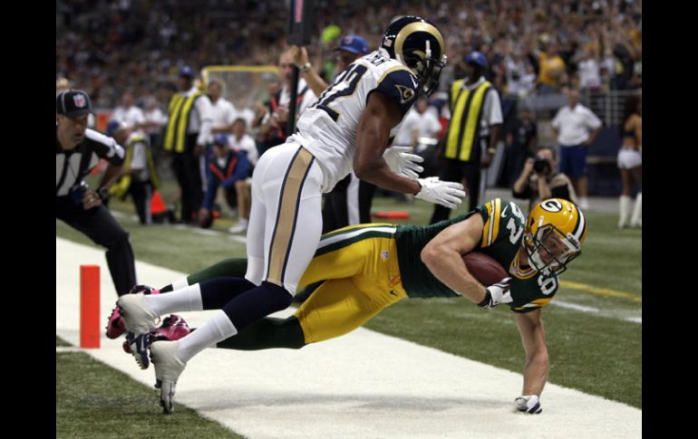 Deportes | Los Empacadores sacaron el triunfo de 30-20 ante San Luis Green Bay, sin problemas ante Carneros Los Empacadores sacaron el triunfo de 30-20 ante San Luis Por: AP 21 de octubre de 2012 - 15:15 hs Jordy Nelson alcanzo las 122 yardas en el partido. AP / SAN LUIS, MISOURI (21/OCT/2012).- Aaron Rodgers lanzó el domingo para 342 yardas y tres touchdowns y la defensa de los Empacadores de Green Bay se plantó firme como visitante, al imponerse 30-20 sobre los Carneros de San Luis. Los Carneros (3-4) sufrieron su primera derrota en casa esta temporada. Randall Cobb atrapó dos pases de anotación y Jordy Nelson tuvo ocho recepciones para 122 yardas, su mejor registro de la temporada, para los Empacadores (4-3). El novato Casey Hayward de los Packers arrancó como titular en lugar del lesionado Sam Shields e interceptó su cuarto pase en tres partidos. Green Bay venía de romper el invicto de los Texanos, con una victoria en Houston la semana pasada. Hasta ahora, sin embargo, habían alternado derrotas y victorias durante las primeras seis semanas. Rodgers terminó con 30 de 37 para su cuarto partido de 300 yardas en la temporada. Los Carneros se medirán la semana próxima contra los Patriots de Nueva Inglaterra en Londres. Temas NFL Futbol Americano Empacadores de Green Bay Carneros de Los Ángeles Lee También Calendario de partidos de la J13 del Apertura 2025 Hirving Lozano confía en el proceso del Tri César Huerta destaca la competencia interna en la Selección Mexicana Futbol hoy 15 de octubre de 2025: ¿Dónde ver los partidos en vivo? Recibe las últimas noticias en tu e-mail Todo lo que necesitas saber para comenzar tu día Registrarse implica aceptar los Términos y Condiciones