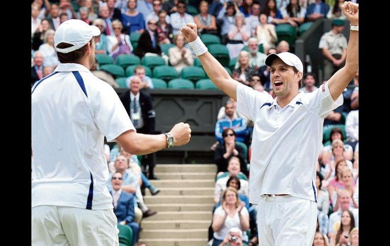 Deportes | Campeones del cuadro masculino de dobles en el Abierto Británico Hermanos Bryan igualan récord de títulos de Grand Slam Campeones del cuadro masculino de dobles en el Abierto Británico Por: REUTERS 3 de julio de 2011 - 04:47 hs Bob Bryan (izq.) y Mike Bryan celebran la obtención del título en Wimbledon. AFP / LONDRES, INGLATERRA (03/JUL/2011).- Los hermanos estadounidenses Bob y Mike Bryan igualaron el récord de 11 títulos en torneos de Grand Slam al consagrarse campeones del cuadro masculino de dobles en el Abierto Británico. Los Bryan, máximos preclasificados en el césped de Wimbledon, se impusieron por 6-3, 6-4 y 7-6 a la pareja conformada por el sueco Robert Lindstedt y el rumano Horia Tecau, octavos cabeza de serie. Los hermanos mellizos, de 33 años, se convirtieron así en el dúo más exitoso en eventos del Grand Slam junto al que formaban los australianos Todd Woodbridge y Mark Woodforde. “Éste es un título en Wimbledon. Es especial. Siempre pensé que jugaríamos al máximo en Wimbledon, perdimos tres dolorosas finales aquí”, afirmó Mike Bryan. Mike mostró toda su felicidad tras haber logrado nuevos hitos en la carrera con su hermano Bob. “Tener dos títulos en Wimbledon es realmente especial, e igualar a los ‘Woodies’ (con 11 coronas de Grand Slam, un equipo que idolatramos, el mejor de todos, es increíble”. Los mellizos estadounidenses, que ahora suman un récord de 73 títulos en dobles, jugaron su quinta final en el All England Club, donde habían perdido tres de las anteriores cuatro. Con los especialistas en doble a menudo con más posibilidades de jugar por más tiempo que sus colegas de individuales, los Bryan no se pusieron límites sobre cuántos trofeos pueden llegar a ganar. “Vamos a seguir. Vemos el fin de nuestro tiempo en cinco o seis años más. Creo que lo vamos a explotar lo más que podamos”, indicó Bob Bryan. Temas Tenis ATP Wimbledon Recibe las últimas noticias en tu e-mail Todo lo que necesitas saber para comenzar tu día Registrarse implica aceptar los Términos y Condiciones