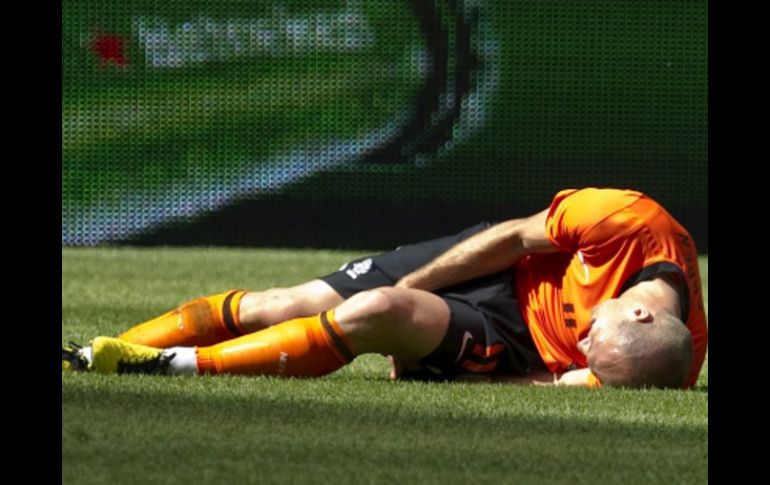 Deportes | Anotó un par de goles y luego se retiró de cambio, en la victoria de los holandeses por 6-1 Holanda aplasta a Hungría; Robben, lesionado El mediocampista del Bayern Munich entró de cambio en el segundo tiempo Por: EFE 5 de junio de 2010 - 13:50 hs Arjen Robben salió lesionado en el partido que jugaron los holandeses contra Hungría. EFE / AMSTERDAM, HOLANDA (05/JUN/2010).- La selección de Holanda desató una ofensiva total en el segundo tiempo del amistoso contra Hungría y después de acabar la primera parte con empate a uno aplastó en Amsterdam al equipo magiar (6-1) con doblete de Arjen Robben, que se retiró lesionado al final del partido. Robben, que había entrado en la segunda parte, fue el protagonista del encuentro con sus desbordes y sus goles antes de abandonar lesionado el terreno de juego en el minuto 85. Como ya ocurrió el pasado día 1 contra Ghana, el equipo de Bert van Marwijk reservó para la segunda parte toda su potencia de fuego después de una primera mitad mediocre en la que incluso empezó perdiendo, tras el gol de Balasz Dzsudzsak en el minuto seis. Un cuarto de hora tardó Holanda en igualar la contienda. En el minuto 21 Robin van Persie puso el 1-1 en el marcador, que ya no volvió a moverse antes del descanso. El ex madridista Wesley Sneijder dio a Holanda la primera ventaja en el minuto 56 y a partir de ahí Hungría se vio incapaz de hacer frente al vendaval ofensivo holandés. Robben hizo su primer tanto en el m.64, Mark van Bommel marcó el 4-1 en el 71; Eljero Elia el 5-1 en el m.74 y Robben cerró la cuenta en el 79. Poco después se lesionó en la rodilla izquierda. En la primera fase del Mundial de Sudáfrica Holanda formará parte del grupo E junto con Dinamarca, Japón y Camerún. Temas Futbol Internacional Partidos amistosos Mundial de Sudáfrica 2010 Selección de Holanda Recibe las últimas noticias en tu e-mail Todo lo que necesitas saber para comenzar tu día Registrarse implica aceptar los Términos y Condiciones