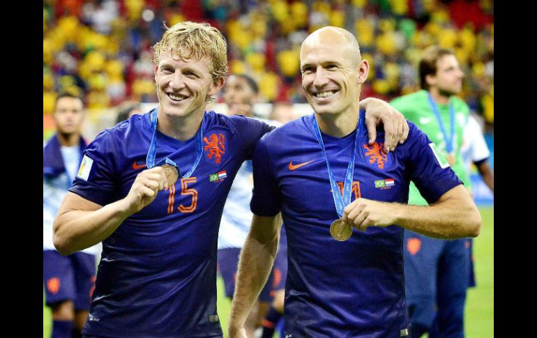 Deportes | La Naranja Mecánica vence 3-0 y se queda con el tercer lugar Holanda sella la vergüenza brasileña La Naranja Mecánica vence 3-0 y se queda con el tercer lugar Por: EL INFORMADOR 13 de julio de 2014 - 04:01 hs Dirk Kuyt y Arjen Robben sonríen con la medalla de tercer lugar colgada al cuello. EFE / GUADALAJARA, JALISCO (13/JUL/2014).- Terminó el calvario de la Verdeamarela en su Mundial con otra goleada en contra. Tras la humillación histórica del 7-1 que le endilgó Alemania en Semifinales, ayer en Brasilia, Holanda le impuso un 3-0 a Brasil por el tercer lugar de la Copa del Mundo 2014, para despedir a los anfitriones en medio de la vergüenza con goles del capitán naranja Robin van Persie, de penalti, de Daley Bling y de Giorginio Wijnaldum. Brasil terminó pagando el experimento del técnico Luiz Felipe Scolari, al dejar fuera de su juvenil e inexperta nómina a históricos como Kaká, Ronaldinho o Robinho, llevando en cambio a 17 jugadores que nunca habían jugado un Mundial y que terminaron siendo aplastados por la presión social y mediática que se autoimpuso el local por levantar la Copa del Mundo. Holanda, por su parte, se va entre sonrisas. Encabezados por un inatrapable Arjen Robben, la nueva Naranja Mecánica tiene un futuro brillante debido a la juventud de su plantel, que regaló a Louis van Gaal un triunfo en su último partido como técnico nacional. Temas Futbol Internacional Selección de Brasil Selección de Holanda Mundial Brasil 2014 Lee También Fallece Junior Dutra al realizarse cirugía estética en manos de dentista sin licencia México busca frenar el paso perfecto de Argentina en Mundial Sub-20 Lista actualizada de selecciones que ya clasificaron al Mundial 2026 Mundial 2026 traerá derrama millonaria al país Recibe las últimas noticias en tu e-mail Todo lo que necesitas saber para comenzar tu día Registrarse implica aceptar los Términos y Condiciones