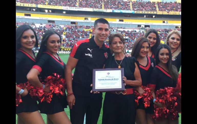 GUADALAJARA, JALISCO (01/ABR/2017).- La directiva de los Rojinegros del Atlas rindió un merecido homenaje a Yolanda Bravo, ella es fundadora del grupo de animación denominado "Las Margaritas", quienes desde hace 33 años amenizan el previo y el intermedio de los partidos de los Rojinegros del Atlas en el Estadio Jalisco.El Atlas le agradeció por ser parte de la historia y tradición del equipo y ante una carretada de aplausos por parte del respetable, recibió el reconocimiento por parte del jugador de la cantera, Édgar Zaldívar. Todo esto antes de que arrancara el encuentro entre Zorros y Xolos de Tijuana.Otro de los homenajes que ofreció la directiva rojinegra, fue por la conmemoración del Día Mundial contra el Autismo, por tal motivo, a la hora del arranque de la parte complementaria, el sonido local, específicamente en voz de Rafael "Chango" Almaraz, le pidió a la afición presente en el Estadio Jalisco, que encendiera la luz de su aparto celular, para que así se iluminara la tribuna, un espectáculo pocas veces antes visto.EL INFORMADOR / JAVIER ROBLES