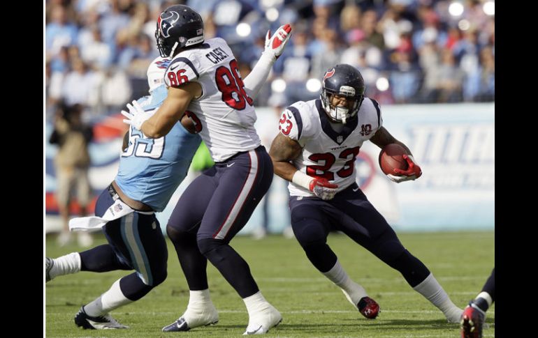 Deportes | Los Texanos vencen 20-10 a los Titanes que se pueden despedir de post temporada Houston asegura playoffs Los Texanos vencen 20-10 a los Titanes que se pueden despedir de post temporada Por: AP 2 de diciembre de 2012 - 16:04 hs Arian Foster (23) fue importante en la victoria de los Texanos.AP / NASHVILLE, TENNESSEE (02/DIC/2012).- Los Texanos de Houston se aseguraron el domingo un puesto en los playoffs por segunda campaña consecutiva, venciendo 20-10 a los Titanes de Tennessee para mejorar el récord de victorias de la franquicia en una temporada. El linebacker novato Whitney Mercilus recuperó un balón suelto y tuvo dos derribos de quarterback, liderando una unidad defensiva que forzó seis pérdidas de balón por los Titanes. Los Texanos (11-1) siguen empatados con Atlanta por el mejor récord en la NFL, luego de su sexto triunfo en fila. Houston barrió a los Titanes (4-8), el equipo al que reemplazaron en la ciudad, apenas por segunda vez. Matt Schaub lanzó para 207 yardas y dos touchdowns, y Arian Foster corrió para otro. Los Titanes debutaron con el coordinador ofensivo Dowell Loggains, pero no le ayudaron, con los receptores dejando caer numerosos balones. Temas NFL Futbol Americano Texanos de Houston Titanes de Tennessee Recibe las últimas noticias en tu e-mail Todo lo que necesitas saber para comenzar tu día Registrarse implica aceptar los Términos y Condiciones
