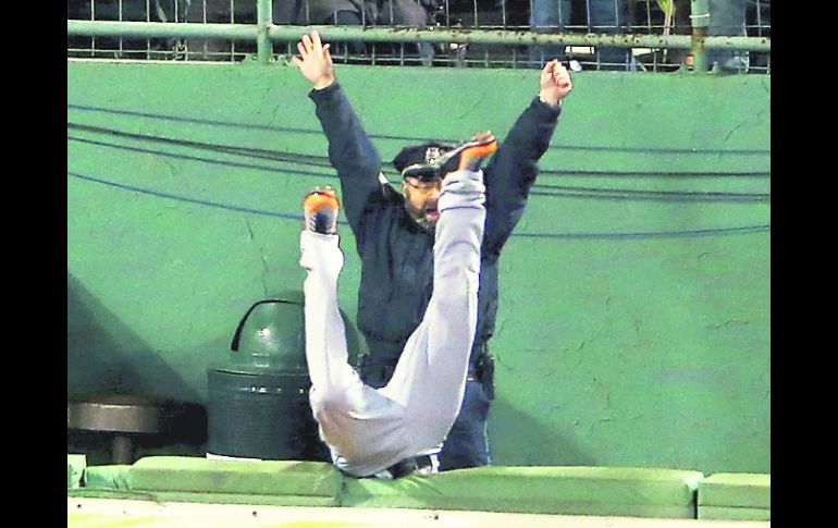 Deportes | Postemporada de las Grandes Ligas Hunter pone buena cara al mal tiempo El jardinero intenta mantener el buen ánimo, a pesar del golpe que se dio y la derrota que sufrieron en el juego dos Por: AP 15 de octubre de 2013 - 04:56 hs El policía que resguardaba el bullpen de los Medias Roja celebra el Grand Slam de Boston, mientras Torii Hunter cae de cabeza. AFP / DETROIT, ESTADOS UNIDOS (15/OCT/2013).- La serie dio la vuelta de la misma manera que Torii Hunter giró sobre la cerca que divide el diamante del bullpen de los Medias Rojas de Boston. Torii Hunter se sentía algo adolorido pero de buen ánimo el lunes, un día después que se cayó de cabeza en el bullpen de Boston en un esfuerzo inútil para atrapar el batazo de Ortiz que empató el segundo juego de la serie de campeonato de la Liga Americana. El jardinero derecho indicó que estará en condiciones de jugar hoy en el tercer partido, pero señaló que la pausa del lunes llegó en el momento ideal. ''Me siento como si hubiese jugado un partido de futbol americano'', dijo Hunter. ''Voy a que me den un masaje y tratamiento y darme un baño caliente. Voy a estar bien''. Hunter se jugó el físico al correr hacia atrás en busca de atrapar el batazo de Ortiz, luego de medir mal la trayectoria de la pelota. Su impulso provocó que traspasara un muro que no es muy alto, pero pudo seguir jugando. ''Me pegué contra la parte alta del muro, me golpeé las costillas y quedé sin aliento'', contó Hunter. ''Me dijeron que caí de cabeza y cosas así. No me enteré de nada, estuve mareado durante un minuto''. Hunter añadió que perdió la trayectoria de la pelota en luces mientras corría. Reconoció que estaba adolorido el lunes. Bromeó cuando le preguntaron sobre si se había sometida a una prueba. Pero luego indicó que era un riesgo que tomaba seriamente. ''Dentro de 30 años, si me olvido cómo se maneja una bicicleta, eso no es problema'', bromeó Hunter. ''Miento. Me pueden sacar, pero no voy a perder el juicio. Iré a que me atiendian, realizar una pruebas y ya veremos. Tengo un dolorcito de cabeza, pero voy a estar bien'', aunque aseguró que aprendieron la lección. ''Puedo decirles algo: Aprendimos de esto'', afirmó Hunter. ''Aprendimos a no tocar la estufa caliente. Tu mamá dejará que la toques una vez y te quemes, para que no lo hagas nunca más''. La estufa no es Fenway Parko el coraje de un equipo de Boston que encabezó las Mayores con 97 triunfos y un diferencial de carreras de más197. ''La estufa caliente es David Ortiz,'' afirmó Hunter. ''Simplemente, ya no quieres volver a tocar esa estufa''. FRASE''Debería de patearlo (al policía). Quiero agradecer a los Medias Rojas que sí se preocuparon por mí, no como el oficial. ¿Proteger y servir?, deberían de quitar eso de su placa ''Torii Hunter, jardinero de Detroit Verlander tiene la misión de reanimar a los Tigres La última vez que Justin Verlander subió al montículo, su equipo disputaba un duelo de vida o muerte. En su próxima apertura, los riesgos no serán tan altos, pero seguramente los Tigres agradecerían otra actuación. ''Evidentemente, esa derrota fue dolorosa'', dijo Verlander. ''Simultáneamente, sabíamos que esta serie sería una pelea encarnizada. Nadie va a apabullar a nadie''. Después de una temporada regular gris para sus estándares, Verlander lanzó 15 episodios sin admitir carrera en la serie de primera ronda de la postemporada, contra Oakland, incluidas ocho entradas en el quinto y definitivo juego. Los Tigres han lanzado juegos sin hits al menos hasta el sexto inning en tres compromisos consecutivos, toda una hazaña incluso para un cuerpo de pitchers que impuso un récord de las Grandes Ligas con mil 428 abanicados durante la campaña regular. Medias Rojas de Boston vs. Tigres de Detroit. Hoy a las 15:00 horas por Fox Sports Temas Beisbol Medias Rojas de Boston Playoffs de Grandes Ligas Tigres de Detroit Lee También Definidas las Series de Campeonato en las Grandes Ligas Dónde ver EN VIVO los juegos de MLB, HOY 11 de octubre Dodgers, entre la angustia y la gloria MLB: Marineros vence a Tigres en maratónico juego y avanza a la Serie de Campeonato Recibe las últimas noticias en tu e-mail Todo lo que necesitas saber para comenzar tu día Registrarse implica aceptar los Términos y Condiciones