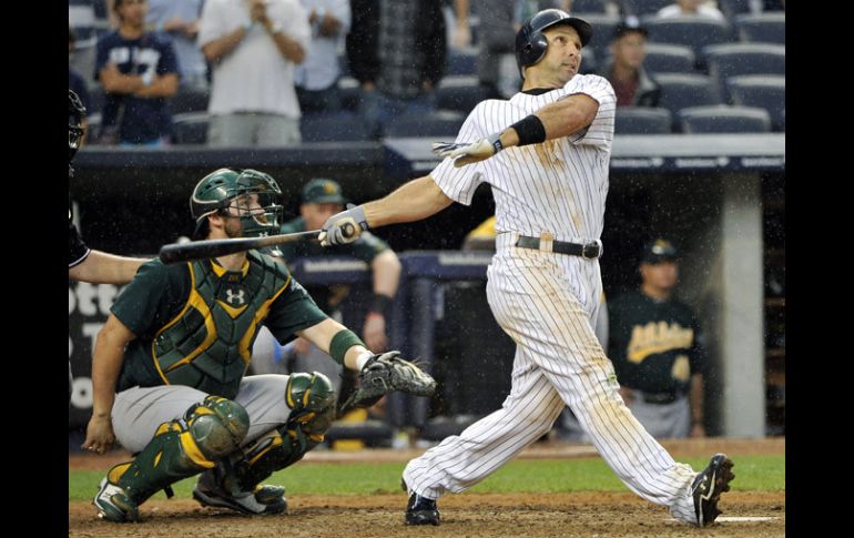 Deportes | Con dos cuadrangulares en el partido permite que los Mulos ganen 10-9 a Oakland Ibáñez mantiene el rumbo de Yankees Con dos cuadrangulares en el partido permite que los Mulos ganen 10-9 a Oakland Por: AFP 22 de septiembre de 2012 - 19:28 hs Ibáñez (der) conecta el cuadrangular que empató el partido a nueve carreras. AP / NUEVA YORK, N.Y. (22/SEP/2012).- Con dos jonrones en la jornada, el cubano Raúl Ibáñez mantuvo con vida a los Yankees de Nueva York rumbo a los playoffs en la Liga Americana, luego de vencer en 14 innings a los Atléticos de Oakland 10x9, mientras que los Rojos de Cincinnati se convirtieron en el primer equipo que gana su división. Los Yankees dejaron en ese capítulo al campo a los A´s cuando el relevista derrotado Tyson Ross (2-10) permitió sencillo del mexicano Eric Chávez, concedió boleto intencional al japonés Ichiro Suzuki, otro imparable al dominicano Alex Rodríguez y un error del primera base Brandon Moss, que le abrió las puertas del plato a los ´Mulos´ con la carrera del gane. El partido llegó al decimotercer inning empatado a cinco carreras, cuando los Atléticos despacharon tres jonrones mediante Jonny Gomes, el cubano Yoenis Céspedes y Chris Carter, uno de ellos con un hombre en base, para irse al frente 9x5. Empero, Ibáñez, que ya había conectado bambinazo en el quinto, volvió a desaparecer la pelota en el decimotercero con un corredor en circulación, para sellar un racimo de cuatro carreras y volver a empatar el encuentro. La victoria fue para el también apagafuegos Cory Wade (1-1) y los Yankees (88-63) siguen ahora a un juego de ventaja sobre los Orioles de Baltimore (87-64) en la División Este de la Liga Americana. En Cincinnati, excelente pitcheo de Matt Latos y bateo de Jay Bruce y Brandon Phillips, le dieron una victoria por blanqueo de 6x0 a los Rojos sobre los Dodgers de Los Ángeles y se convirtieron en el primer equipo que gana su división en esta campaña. Bruce puso la primera carrera en el cuarto episodio con un jonrón solitario frente al abridor y finalmente derrotado Stephen Fife (0-2). Los Rojos agregaron otra en el quinto también sencillos consecutivos de Phillips, el canadiense Joey Votto y Todd Frazier y otra más en el séptimo por vualabarda de Phillips, suficiente para llevarse la victoria. Las palmas se las llevó el abridor Latos (13-4), quien trabajó ocho sólidos episodios en blanco, con solamente seis hits permitido y seis ponches propinados, para dejarle el puesto por un inning al cubano Aroldis Champan, quien concedió un boleto pero después retiró el episodio de 1-2-3. Los Rojos (92-60) ya están clasificados como campeones de la Divisón Central de la Liga Nacional, por 11 juegos de ventaja sobre los campeones vigentes Cardenales de St. Louis. Con la derrota, los Dodgers (78-74) se fueron a tres juegos de los dueños de los comodines (Bravos y Cardenales) en el ´Viejo Circuito´, cuando le quedan 10 juegos de temporada regular. En Washington, el lanzador cubano Gío González (Nacionales) se convirtió en el primer pitcher de las Grandes Ligas en la temporada 2012 en llegar a 20 victorias, luego de imponerse 10x4 a los Cerveceros de Milwaukee. Con el triunfo, los Nacionales (92-59) también siguen siendo el equipo con el mejor récord en esta campaña, además de tener hace días asegurado el boleto para la postemporada en la Liga Nacional. González (20-8) trabajó siete sólidos episodios, en los que diseminó tres hits y dos carreras con cinco ponches, para superar el duelo a Wily Peralta (2-1). Los Nacionales contaron con excelente ofensiva de Ryan Zimmermann, Ian Desmond y Adam LaRoche, quienes conectaron jonrones, los dos primeros con dos hombres en base cada uno contra el relevista cubano Liván Hernández en el cuarto episodio. En otros resultados, Orioles a Medias Rojas 9x6 en 12 innings, Tigres a Mellizos 8x0, Cardenales a Cachorros 5x4 en 10 entradas y Mets a Marlins 4x3 Temas Beisbol MLB Yankees de Nueva York Lee También NFL: Sorpresiva derrota de los Eagles ante Giants Dodgers va a la Serie de Campeonato; Chicago fuerza a quinto juego Dónde ver EN VIVO los juegos de MLB, HOY 9 de octubre ¿Dónde ver EN VIVO Eagles vs. Giants? Recibe las últimas noticias en tu e-mail Todo lo que necesitas saber para comenzar tu día Registrarse implica aceptar los Términos y Condiciones