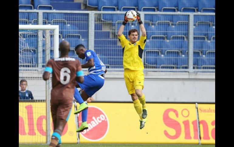 Deportes | Los Dragones ganan 2-0 al Duisburgo de la Segunda División alemana Iker Casillas debuta con el Porto Los Dragones ganan 2-0 al Duisburgo de la Segunda División alemana Por: EL INFORMADOR 19 de julio de 2015 - 01:34 hs Iker Casillas no tuvo problemas ante la débil ofensiva del rival. TWITTER / @FCPorto DUISBURG, ALEMANIA (19/JUL/2015).- El portero Iker Casillas debutó ayer con su nuevo equipo, el portugués Porto, en la victoria 2-0 ante el Duisburgo, de la Segunda División alemana, partido en el que fue titular y mantuvo su portería en ceros. Casillas apenas intervino por la escasa puntería de los alemanes. En el minuto siete encajó un tanto, pero el árbitro lo anuló porque el delantero estaba en fuera de juego. Los alemanes dispararon hasta tres veces fuera de portería, por lo que el ibérico no firmó ninguna parada. Eso sí, atrapó un balón al 23’, tras un centro desde la banda izquierda. En la segunda parte el ex capitán del Real Madrid salió de cambio, cuando el técnico Julen Lopetegui terminaría por realizar nueve cambios. Por los Dragones anotaron el argelino Yacine Brahimi al 60’ y Hernani al 63’. “Hoy he jugado mi primer partido con el Oporto y las sensaciones han sido muy buenas. ¡Deseando que empiece la temporada!”, afirmó el guardameta madrileño de 34 años. Temas Futbol Internacional Partidos amistosos Porto FC Iker Casillas Recibe las últimas noticias en tu e-mail Todo lo que necesitas saber para comenzar tu día Registrarse implica aceptar los Términos y Condiciones