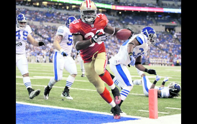 Deportes | Es el primer encuentro de pretemporada Indianápolis cae ante los 49ers Peyton Manning llevó a los Potros a un gol de campo y un touchdown, pero no fue suficiente para evitar la derrota por 37-17 Por: EL INFORMADOR 16 de agosto de 2010 - 01:32 hs Anthony Dixon, corredor de los 49ers, colaboró con 100 yardas. AP / INDIANÁPOLIS, INDIANA (16/AGO/2010).- El mariscal de campo David Carr lanzó un pase de anotación, y los 49ers de San Francisco anotaron 34 puntos al hilo para despegarse en el marcador y conseguir una victoria ayer por 37-17 ante los subcampeones Potros de Indianápolis, en la pretemporada de la NFL. Seis de los titulares de los Potros se quedaron sin jugar, y Peyton Manning lideró a Indianápolis a un gol de campo y un touchdown en sus dos primeras posesiones. Pero después de que Manning y la mayoría de los titulares de los Potros dejaran el encuentro, después de tan sólo 16 jugadas, los 49ers se aprovecharon de los errores de Indianápolis. Reggie Smith regresó una intercepción 91 yardas para touchdown; Michael Robinson anotó en acarreo de tres yardas y Shane Andrus convirtó dos goles de campo cortos, para poner a San Francisco adelante por 20-10 al medio tiempo. El corredor reserva Anthony Dixon, contribuyó a la causa del equipo de la “bahía” con 100 yardas y una anotación terrestre, en 21 acarreos. Sin Manning, los Potros no pudieron remontar. Indianápolis perdió el balón en cuatro ocasiones, y no volvió a anotar puntos hasta el principio del cuarto periodo. Temas NFL Futbol Americano Potros de Indianápolis 49ers de San Francisco Lee También La NFL suspende a Brian Branch por golpear a jugador de Chiefs Cartucho NFL: Resultados del Monday Night Football Futbol hoy 14 de octubre de 2025: ¿Dónde ver los partidos en vivo? Recibe las últimas noticias en tu e-mail Todo lo que necesitas saber para comenzar tu día Registrarse implica aceptar los Términos y Condiciones