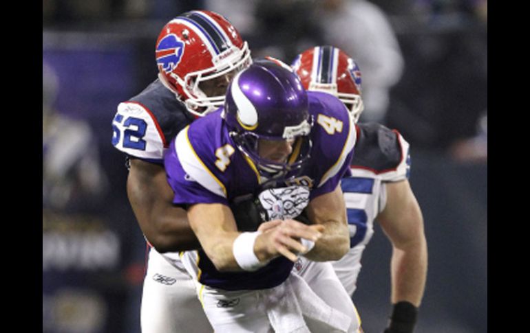 Deportes | Minnesota obtuvo la victoria ante los Bills de Buffalo con un marcador de 38-14 Jackson da triunfo a los Vikingos Minnesota obtuvo la victoria ante los Bills de Buffalo con un marcador de 38-14 Por: EFE 5 de diciembre de 2010 - 14:56 hs El mariscal de campo de los Vikingos, Favre, fue golpeado por Arthur Moats. AP / MINNESOTA, EE.UU (05/DIC/2010).- El mariscal de campo Tarvaris Jackson salió del banquillo para sustituir al lesionado Brett Favre y lanzó para 187 yardas con dos envíos de touchdown que permitieron a los Vikingos de Minnesota ganar por 38-14 a los Bills de Buffalo. Los Vikingos (5-7), que ahora tienen marca de 2-0 bajo el entrenador interino Leslie Frazier, se vieron afectados por la lesión que sufrió Favre al inicio del partido, pero encontraron la solución y el triunfo con Jackson. Favre resultó lesionado del hombro en la primera serie del partido, después de recibir un fuerte golpe del jugador de línea de los Bills, Arthur Moats. Entonces Jackson entró al emparrillado para liderar a los Vikingos a un triunfo claro ante uno de los peores equipos de la Liga Nacional de Fútbol Americano (NFL) en lo que va de la temporada. Jackson terminó con 15 de 22 pases para 187 yardas con dos envíos de touchdown y tuvo tres interceptaciones, incluyendo una que Drayton Florence regresó 40 yardas hasta la zona de anotación. Florence logró dos interceptaciones para los Bills (2-10), que tuvieron cinco pérdidas de balón y consiguieron sólo nueve yardas por aire en la primera mitad del partido para perder por segunda ocasión consecutiva, después de haber tenido dos triunfos seguidos. El mariscal de los Bills, Ryan Fitzpatrick completó 15 de 25 envíos para 158 yardas con un envío de anotación y una interceptación. Temas NFL Futbol Americano Bills de Buffalo Vikingos de Minnesota Lee También La NFL suspende a Brian Branch por golpear a jugador de Chiefs NFL: Resultados del Monday Night Football Futbol hoy 14 de octubre de 2025: ¿Dónde ver los partidos en vivo? Javier Aguirre asegura que realizará siete u ocho cambios ante Ecuador Recibe las últimas noticias en tu e-mail Todo lo que necesitas saber para comenzar tu día Registrarse implica aceptar los Términos y Condiciones