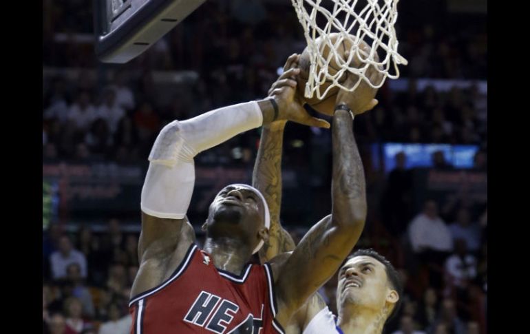 Deportes | LeBron encabeza el ataque ganador de los Heat durante sus minutos en el campo James suma 30 puntos y empata marca en triunfo de los Heat Miami se coloca con marca de 33-14 para afianzarse como líderes en la División Sureste al conseguir el cuarto triunfo consecutivo Por: EFE 9 de febrero de 2013 - 07:35 hs James LeBron (6) encesta mientras Matt Barnes de los Clippers intenta bloquearlo. AP / WASHINGTON, ESTADOS UNIDOS (09/FEB/2013).- El alero LeBron James logró 30 puntos, para empatar marca de equipo, y el escolta Dwyane Wade colaboró con 20 tantos que ayudaron a los Heat de Miami a ganar por 111-89 a los Clippers de Los Ángeles, en duelo de líderes de división. James encabezó el ataque ganador de los Heat durante los 31 minutos que estuvo en el campo el equipo de Miami se colocó con marca de 33-14 para afianzarse como líderes en la División Sureste al conseguir el cuarto triunfo consecutivo. El alero estrella de los Heat llegó a los cuatro partidos seguidos que ha anotado 30 o más puntos y empató con Wade como los dos únicos jugadores con esa racha en los 25 años de historia que tiene la franquicia de Miami. Desde que se unió a los Heat, hace tres temporadas, James ha conseguido al menos 30 puntos, cinco rebotes y cinco asistencias en 51 partidos. En el mismo periodo de tiempo, el alero Kevin Durant, de los Thunder de Oklahoma City, logró 20; el escolta Kobe Bryant, de los Lakers de Los Ángeles, 18, y el base Russell Westbrook, de los Thunder, 17. El base Mario Chalmers anotó 18 puntos y el alero Shane Battier aportó 12, que colocaron a los Heat con marca de 21-3 en partidos disputados en su campo del American Airlines Arena, de Miami. Los Clippers (35-17), líderes en la División Pacífico, tuvieron al pívot DeAndre Jordan como su máximo encestador al conseguir 17 puntos y capturó seis rebotes. El equipo de los Clippers, incluyó en su alineación al veterano base Chauncey Billups, Chris Paul y Blake Griffin, que fueron dados de alta de la lista de lesionados, pero se quedaron sin ser factor ganaron para su equipo al aportar una combinación de sólo 23 puntos. Temas NBA Basquetbol Miami Heat Recibe las últimas noticias en tu e-mail Todo lo que necesitas saber para comenzar tu día Registrarse implica aceptar los Términos y Condiciones