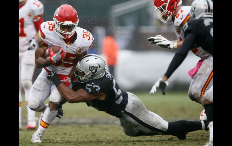 OAKLAND, CALIFORNIA (16/OCT/2016).- El corredor Spencer Ware impuso marca personal de 131 yardas y una anotación y los visitantes Jefes de Kansas City derrotaron 26-10 a los Raiders de Oakland.Los Jefes (3-2) recuperaron la forma en su regreso a la acción luego de que hace dos semanas fueron superados por 29 puntos por los Acereros de Pittsburgh.El mariscal de campo Alex Smith completó 19 de 22 pases para 224 yardas para liderar el ataque aéreo de los Jefes.Los Raiders (4-2) perdieron con su quarterback Derek Carr, que completó 22 de 34 pases para 225 yardas con un pase de touchdown y uno interceptado.