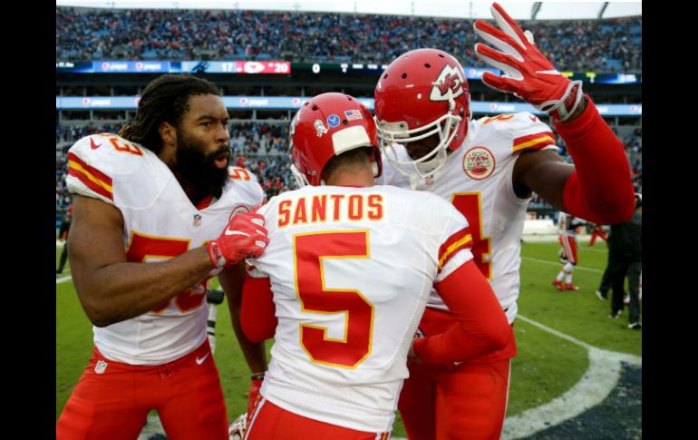 CHARLOTTE, CAROLINA DEL NORTE (13/NOV/2016).- Marcus Peters arrebató el balón a Kelvin Benjamin a 20 segundos del final, el brasileño Cairo Santos conectó un gol de campo de 37 yardas cuando el reloj de juego llegaba a ceros, y los Jefes de Kansas City se recuperaron de una desventaja de 17 puntos para superar el domingo 20-17 a las Panteras de Carolina.El juego estaba empatado cuando Benjamin atrapó un pase de Cam Newton, y Peters le arrebató el balón. El cuarto gol de campo de Santos del juego marcó la diferencia al darle a los Chiefs (7-2) su quinta victoria consecutiva y su decimoséptima en los últimos 19 encuentros.Eric Berry también devolvió 42 yardas una intercepción a Newton para aportar un touchdown luego que la defensiva de Kansas City realizó las jugadas clave cuando más lo necesitaba. Alex Smith lanzó para 178 yardas y Spencer Ware sumó 61 yardas por tierra para los Chiefs, cuya ofensiva no pudo anotar un solo touchdown.