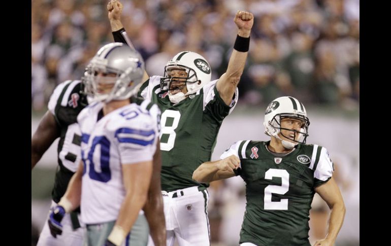 Deportes | Un gol de campo de Nick Folk da a los de Nueva York la victoria ante Vaqueros Jets vence a Dallas 27-24 Un gol de campo de Nick Folk da a los de Nueva York la victoria ante Vaqueros Por: NTX 11 de septiembre de 2011 - 22:37 hs Los pateadores Nick Folk (2) y Mark Brunell (8), exultantes tras la victoria ante Dallas. AP / NUEVA YORK, N.Y. (11/SEP/2011).- Un gol de campo de 50 yardas del pateador Nick Folk, cuando quedaban 27 segundos por jugarse en el último cuarto, rompió un empate a 24 puntos y le dio a Jets de Nueva York un espectacular triunfo ante Vaqueros de Dallas por 27-24. Con este gol de campo, Jets coronó un espectacular regreso en el último cuarto, luego que llegaron a estar con desventaja de 14 puntos (10-24). Sin embargo, un balón suelto del mariscal de campo de Dallas, Tony Romo, una pateada bloqueada y una intercepción al mismo Romo permitieron a Jets empatar y seguir con ese impulso para ganar con el gol de campo de 50 yardas de Folk. Fue el equipo visitante quien puso en movimiento el tanteador, cuando, en su primera ofensiva, se puso arriba en el marcador al coronar una marcha de 73 yardas con un pase de anotación de tres de Tony Romo a su receptor Dez Bryant y poner la pizarra 7-0. En el segundo cuarto, la escuadra texana amplió su ventaja cuando su pateador de goles de campo, Dan Bailey, hizo bueno un intento de 34 yardas y con ello puso los cartones 10-0 a favor de los visitantes. En las postrimerías del segundo cuarto, Jets finalmente pudo hacerse presente en el marcador, cuando, con 37 segundos por jugarse en la primera mitad, el mariscal de campo Mark Sánchez completó pase de anotación de cuatro yardas con el ala cerrada Dustin Keller y así irse al medio tiempo con una desventaja de apenas tres puntos. En el tercer cuarto, Dallas volvió a incrementar su delantera a diez unidades, cuando Romo completó su segundo pase de anotación en el partido, al conectarse en envío de 36 yardas con su receptor Miles Austin y poner la pizarra 17-7. Nueva York se acercó cuando Folk conectó un gol de campo de 34 yardas, que puso la pizarra 17-10, aún a favor de la escuadra texana. Pero el cuarto período fue una pesadilla, pues tras lograr su último touchdown cometieron muchos errores que causaron que les anotaran 17 puntos sin respuesta. La reacción local inició cuando Sánchez completó pase de anotación con el receptor Plaxico Burress y acercarse 24-17. El juego se empató gracias a los equipos especiales de Nueva York, pues el profundo Matt McBriar bloqueó una patada de despeje que fue levantada por Isaiah Trufant, quien recorrió 18 yardas hasta las diagonales y emparejar los cartones a 24 puntos. En la siguiente ofensiva, Romo sería interceptado y Jets aprovechó la excelente posición de campo y logró el triunfo con el gol de campo de 50 yardas de Folk, ex pateador de Vaqueros, y así culminar el espectacular regreso y su consecuente voltereta. En este juego ninguno de los dos mariscales de campo tuvo buenas actuaciones. El de Jets, Mark Sánchez, completó 26 de sus 44 pases para una ganancia de 335 yardas con dos envíos de touchdown además de sufrir una intercepción. Su contraparte en Vaqueros, Tony Romo, completó 23 de sus 36 lanzamientos para un avance de 352 yardas con dos pases de anotación a cambio de una intercepción. Anotación por cuartos: Total Dallas 7 3 7 7 -- 24 NY Jets 0 7 3 17 –- 27 Temas NFL Futbol Americano Jets de Nueva York Vaqueros de Dallas Lee También Futbol hoy 10 de octubre de 2025: ¿Dónde ver los partidos en vivo? México listo para un nuevo desafío en el Mundial Sub-17 Femenil Todas las selecciones que han calificado al Mundial 2026 hasta hoy Chivas y América calientan en redes el Clásico Nacional de la Fecha FIFA Recibe las últimas noticias en tu e-mail Todo lo que necesitas saber para comenzar tu día Registrarse implica aceptar los Términos y Condiciones