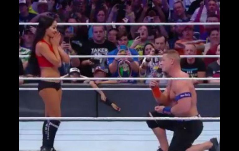 GUADALAJARA, JALISCO (03/ABR/2017).- Son dos de los peleadores más duros y famosos de la lucha libre estadounidense y ahora serán también marido y mujer: se trata de John Cena y Nikki Bella, quienes protagonizaron la entrega de su anillo de compromiso ante unos 70 mil espectadores.Los peleadores de la World Wrestling Entertainment participaban la noche del domingo en Orlando, Florida, en el evento WrestleMania 33. Como pareja mixta, cumplieron con el público al derrotar a The Miz y Maryse. Sin embargo, antes de bajar del ring Cena pidió el micrófono, le pidió a Nikki que lo escuchara, se puso de rodillas y comenzó el romántico momento."He esperado mucho tiempo para preguntarte esto: ¿quieres casarte conmigo?". La peleadora asintió emocionada y la pareja se besó ante su público.John Cena y Nikki Bella son pareja desde 2012 y dos de los más conocidos nombres de este deporte en Estados Unidos. Cena es uno de sus máximos ganadores, con 16 campeonatos mundiales, 13 de ellos en la WWE. Nikki tiene dos campeonatos en la categoría Divas de la WWE y, junto con su hermana gemela Brie Bella, forma un conocido equipo.