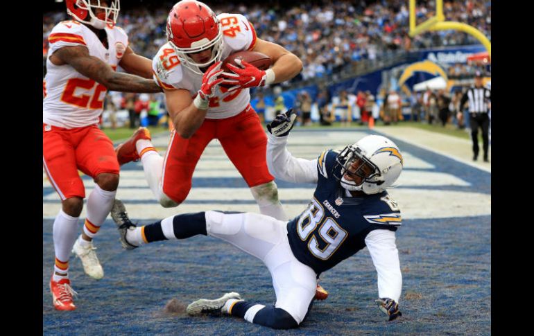 SAN DIEGO, ESTADOS UNIDOS (01/ENE/2017).- Jefes de Kansas City (12-4) se adjudicó el título de la División Oeste de la Conferencia Americana (AFC) de la NFL, al combinar su derrota de 37-27 sobre Cargadores de San Diego (5-11) con un revés de Raiders de Oakland (12-4) ante Broncos de Denver (8-8).La "tribu" necesitaba ganar hoy en el Qualcomm Stadium de San Diego, California, y esperar una derrota de los "malosos" en la Milla Alta para hacerse con el banderín del sector. Las dos condiciones se dieron en esta semana 17, última de acción en la temporada 2016 de la Liga Nacional de Futbol Americano (NFL).La marca perfecta de Kansas City, de seis ganados sin derrota, ante rivales de su división, fue lo que le valió quedar por encima de Oakland, 3-3 ante equipos de su sector, en la carrera por la postemporada, aunque Raiders ya tenía amarrado, al menos, el boleto de comodín.Al final del encuentro, el pasador visitante Alex Smith completó 21 pases en 28 intentos, con 264 yardas de ganancia, un interceptado y dos de anotación con el corredor Charcandrick West, de cuatro y dos yardas, además de conseguir uno más en personal de cinco.Del lado local, Philip Rivers acertó 22 de 38, dos interceptados, para 269 yardas y dos de anotación con los alas cerradas Antonio Gates, de dos yardas, y Hunter Henry, de 12.Con este triunfo, Jefes se convirtió en el segundo sembrado de la AFC; así aseguró descansar en la ronda de comodines y espera rival para la divisional.Raiders, por su cuenta, deberá enfrentar la próxima semana al campeón de la AFC Sur, Texanos de Houston (9-7).