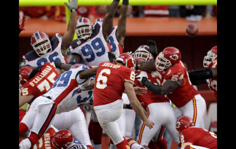 Deportes | Los Jefes anotan el gol de campo de la victoria al final de los 15 minutos extras Kansas gana en tiempo extra a Buffalo Los Jefes anotan el gol de campo de la victoria al final de los 15 minutos suplementarios Por: AP 31 de octubre de 2010 - 16:43 hs Acción del gol de campo de la victoria de los Jefes de Kansas City. AP / KANSAS CITY MISSOURI (31/OCT/2010).- Ryan Succop conectó el domingo un gol de campo de 35 yardas cuando terminaba el tiempo extra para llevar a los Jefes de Kansas City a un triunfo de 13-10 sobre los Bills de Buffalo, que aún no conocen la victoria esta temporada. Succop tuvo una oportunidad de ganar el encuentro cuando quedaba 3:38 minutos en el tiempo adicional, pero su intento de gol de campo de 39 yardas giró hacia la izquierda en el último instante. Rian Lindell, pateador de Buffalo, conectó en tiempo extra lo que hubiera sido un gol de campo de 53 yardas ganador, pero la patada fue anulada debido a que los Jefes habían pedido su último tiempo fuera. Obligado a realizar nuevamente su patada, Lindell lo hizo sumamente molesto y el balón golpeó el poste derecho. Los Jefes (5-2) ganaron por tierra más de 200 yardas por tercera semana seguida, pero constantemente se vieron detenidos por sus propios errores y castigos. Los Bills (0-7), que perdieron en tiempo extra ante Baltimore la semana pasada, tienen el tercer peor inicio de temporada en la historia de la franquicia. Si Succop hubiera fallado su segunda patada, se hubiera registrado el primer empate en la NFL desde que Filadelfia y Cincinnati terminaron 13-13 el 16 de noviembre del 2008. Temas NFL Futbol Americano Bills de Buffalo Jefes de Kansas City Lee También Aldo Rocha, listo para reaparecer con Atlas ¿Por qué Richard Ledezma no puede ser convocado con la Selección Mexicana? México anuncia su candidatura para ser sede de la Copa Mundial Femenina 2031 Chivas, en busca del pase directo a Liguilla tras un torneo de altibajos Recibe las últimas noticias en tu e-mail Todo lo que necesitas saber para comenzar tu día Registrarse implica aceptar los Términos y Condiciones