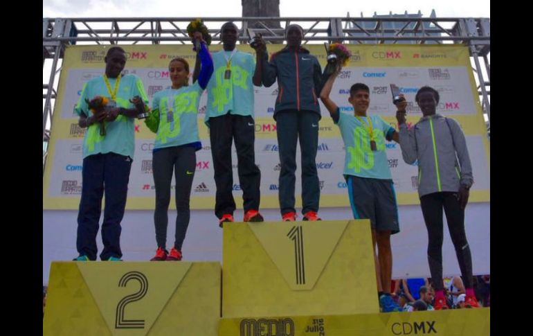 Deportes | Los centroafricanos ocupan los primeros lugares al término de la carrera Kenianos ganan el Medio Maratón de la Ciudad de México Los centroafricanos ocupan los primeros lugares al término de la carrera Por: SUN 31 de julio de 2016 - 10:17 hs Triunfadores del Medio Maratón de la CDMX. TWITTER / @ManceraMiguelMX CIUDAD DE MÉXICO (31/JUL/2016).- Con un tiempo de 1:05:29, el keniano Emmanuel Mnangat cruzó la meta ubicada frente al Ángel de la Independencia. En segundo lugar llegó el también keniano Nickson y en en tercer lugar el mexicano Luna Aburto. En la rama femenil, la corredora Risper Biyaki Gesabwa, también de Kenia, se impuso con un tiempo de 1:17:28, seguida por la mexicana Katia Mirel García, quien finalizó en segundo lugar ante el gran aplauso de los aficionados. El resto de los 25 mil corredores registrados siguen avanzando la ruta. Se prevé que los últimos competidores atraviesen a las 10.00 horas a la meta, por lo que continúan los cierres viales y el servicio parcial en las Líneas 1,3 y 4 del Metrobús. Temas Atletismo Ciudad de México Maratón Lee También México lucha por acceder a más de 300 pueblos incomunicados tras las lluvias Clima CDMX: Pronóstico de lluvia hoy, 14 de octubre Marchas CDMX: HOY, 14 de octubre, estas son las afectaciones viales NETFLIX CONFIRMA qué cines de México proyectarán Frankenstein Recibe las últimas noticias en tu e-mail Todo lo que necesitas saber para comenzar tu día Registrarse implica aceptar los Términos y Condiciones