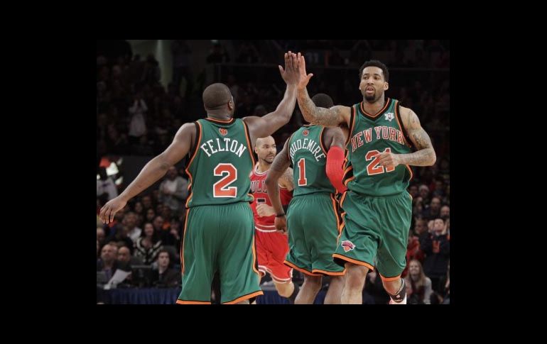 Los Knicks de Nueva York festejaron su triunfo sobre Chicago. AP  /