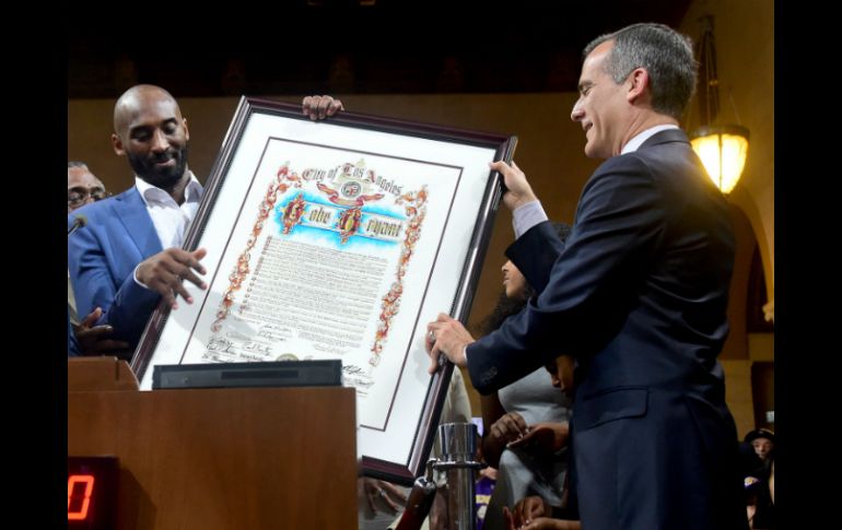 LOS ÁNGELES, ESTADOS UNIDOS (24/08/2016).- El ex jugador de basquetbol Kobe Bryant reconoció estar viviendo "una experiencia muy surrealista" durante la proclamación hoy en la ciudad de Los Ángeles, California del "día de Kobe Bryant" (24/8, los dos números que usó a lo largo de su carrera en la NBA)."Es una experiencia muy surrealista que designen un día en tu honor, pero pasar toda mi carrera luciendo esa armadura dorada (en referencia a la vestimenta de los Lakers de Los Ángeles, su único equipo) ha sido una enorme bendición", manifestó Bryant durante el acto celebrado en el ayuntamiento de Los Ángeles."Lo primero que pensé al enterarme fue: '¿Qué?' Estaban mis hijas delante. Les comenté que al menos ese día yo tendría control sobre la televisión en casa. Y me dijeron que de eso nada", bromeó Bryant."Nunca me imaginé algo así. Estar aquí hoy con mi familia me da mucho orgullo", comentó el deportista, que quiso mandar un mensaje a aquellos jóvenes que crecieron soñando con tener una carrera como la suya."Tienes que trabajar. Para hacer tus objetivos realidad, hay que esforzarse cada día. Eso es lo que me ha permitido estar hoy aquí", sostuvo.El escolta, que acaba de cumplir 38 años, pasó los 20 años de su carrera profesional en las filas de los Lakers y esta ha sido la manera en la que la ciudad le agradece por su dedicación y lealtad.Para el alcalde de la urbe californiana, Eric Garcetti, Bryant demostró durante su carrera que Los Ángeles tiene un gran "espíritu de lucha", y le dio las gracias a título personal por ser "infrecuentemente leal en una época en la que la gente cambia de equipo como si se tratara de un traje".Kobe Bryant se retiró al final de la temporada 2015-2016 de la NBA, con cinco campeonatos en su palmarés y como el tercer máximo anotador de la historia de la competición con 33 mil 643 puntos.Por su parte, el concejal de la ciudad José Huizar destacó los esfuerzos de Bryant para aliviar el problema de la mendicidad en la ciudad.Bryant y su esposa, Vanessa, crearon la fundación Kobe and Vanessa Bryant Family Foundation (KVBFF), dedicada a mejorar las vidas de jóvenes y familias necesitadas. A lo largo de los años, la fundación se ha asociado con organizaciones locales como Step Up on Second, My Friend's Place o United Way para conseguir esos objetivos.