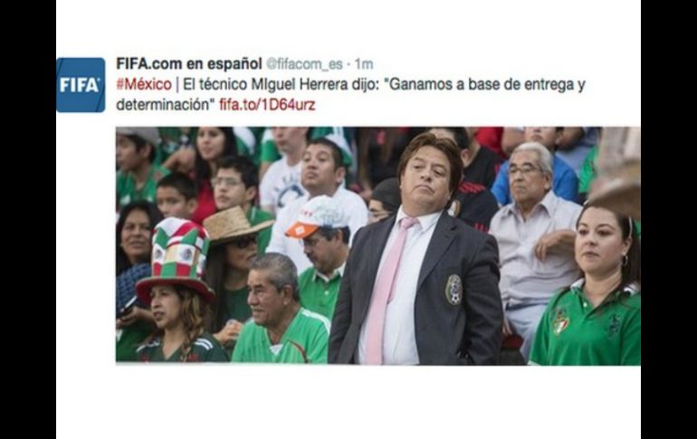 Deportes | La federación parafrasea una declaración de la cuenta del técnico falsa La FIFA confunde a Miguel Herrera con imitador La federación parafrasea una declaración de la cuenta del técnico falsa Por: EL INFORMADOR 13 de octubre de 2014 - 14:31 hs La Selección mexicana ganó contra su similiar de Panamá 1-0 partidos amistosos este fin de semana. AP / ARCHIVO. GUADALAJARA, JALISCO (13/OCT/2014).- El Twitter oficial de la Federación Internacional de Futbol Asociado en español ( @fifacom_es) confundió al técnico de la Selección nacional con un imitador. La Selección mexicana de futbol ganó el día de ayer agónicamente a su similar de Panamá 1-0 en partido amistoso con miras a la Copa Oro y Copa América. Tras finalizar el encuentro, el organismo internacional, parafraseó una declaración del "Piojo" Hererra, acompañada de una imagen, sin embargo; la fotografía correspondía a un imitador de técnico nacional. El "clon", se ve portando un traje e incluso se percibe el logo oficial de la Federación Mexicana de Futbol. Momentos después, la FIFA se dió cuenta de su error y eliminó el tuit para posteriormente, volver a publicar el mismo comentario, pero esta vez, con el verdadero Miguel Herrera. EL INFORMADOR / HÉCTOR NAVARRO Temas Futbol Mexicano Selección mexicana FIFA Miguel El Piojo Herrera Twitter Lee También Tabla de goleo Liga MX: Posiciones tras la Jornada 13 del Apertura 2025 Así queda la tabla general de la Liga MX tras la J13 del Apertura 2025 Mundial Sub-20: ¿Dónde ver EN VIVO la final Argentina vs. Marruecos? Futbol hoy 19 de octubre de 2025: ¿Dónde ver los partidos en vivo? Recibe las últimas noticias en tu e-mail Todo lo que necesitas saber para comenzar tu día Registrarse implica aceptar los Términos y Condiciones